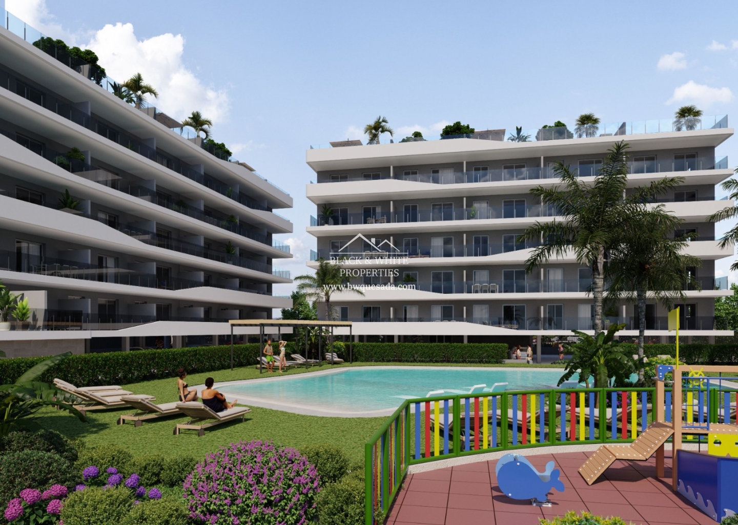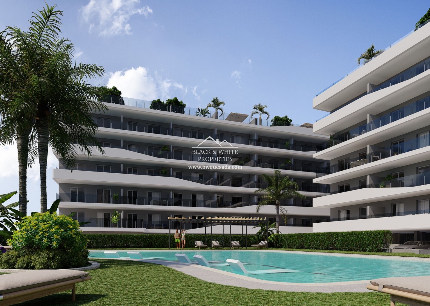 Moderno residencial cerrado compuesto por viviendas de 2 y 3 dormitorios y 2 baños completos. El complejo está formado por 3 bloques de apartamentos con amplias zonas comunes ajardinadas que incluyen piscina con camas de agua, parque de juegos infantil, pérgola y aparcamiento para bicicletas. Las viviendas han sido cuidadosamente diseñadas para brindarte una experiencia de vida excepcional, con acabados de alta calidad y un estilo moderno. Disfruta de sus amplias terrazas, donde podrás relajarte, organizar cenas al aire libre y contemplar los atardeceres! La ubicación es simplemente inmejorable. Podrás disfrutar de un entorno único junto al parque natural de las Salinas, a tan sólo 100 metros de la playa, donde podrás practicar deportes acuáticos o simplemente relejarte bajo el sol. Estarás cerca de una amplia oferta de restaurantes, bares y supermercados.