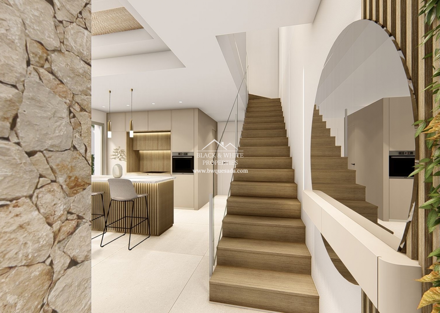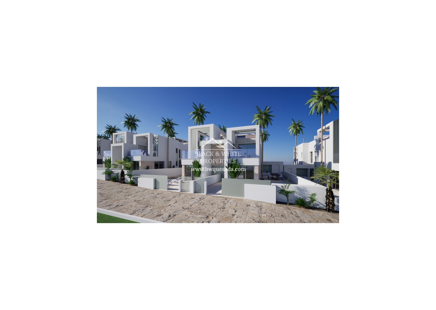 Os presentamos esta nueva promoción situada en Ciudad Quesada, la cual ofrece 30 exclusivas villas modernas situadas a pocos minutos caminando de todo el ocio. Estas impresionantes villas se distribuyen en dos plantas con terraza privada y solarium. La planta baja dispone de un luminoso salón de planta abierta con una moderna cocina y comedor, además de un amplio dormitorio con armarios empotrados y un baño. Arriba tienes dos dormitorios con armarios empotrados y baños en suite. El dormitorio principal cuenta con balcón privado. Construidas en parcelas que van desde 167 a 183 m2, estas villas están equipadas con características de última generación, que incluyen persianas eléctricas, sistema de agua caliente por aerotermia, paquete completo de electrodomésticos, área preinstalada para jacuzzi, terraza, aire acondicionado por conductos con opción a añadir sistema Airzone, paquete de iluminación y piscina privada.