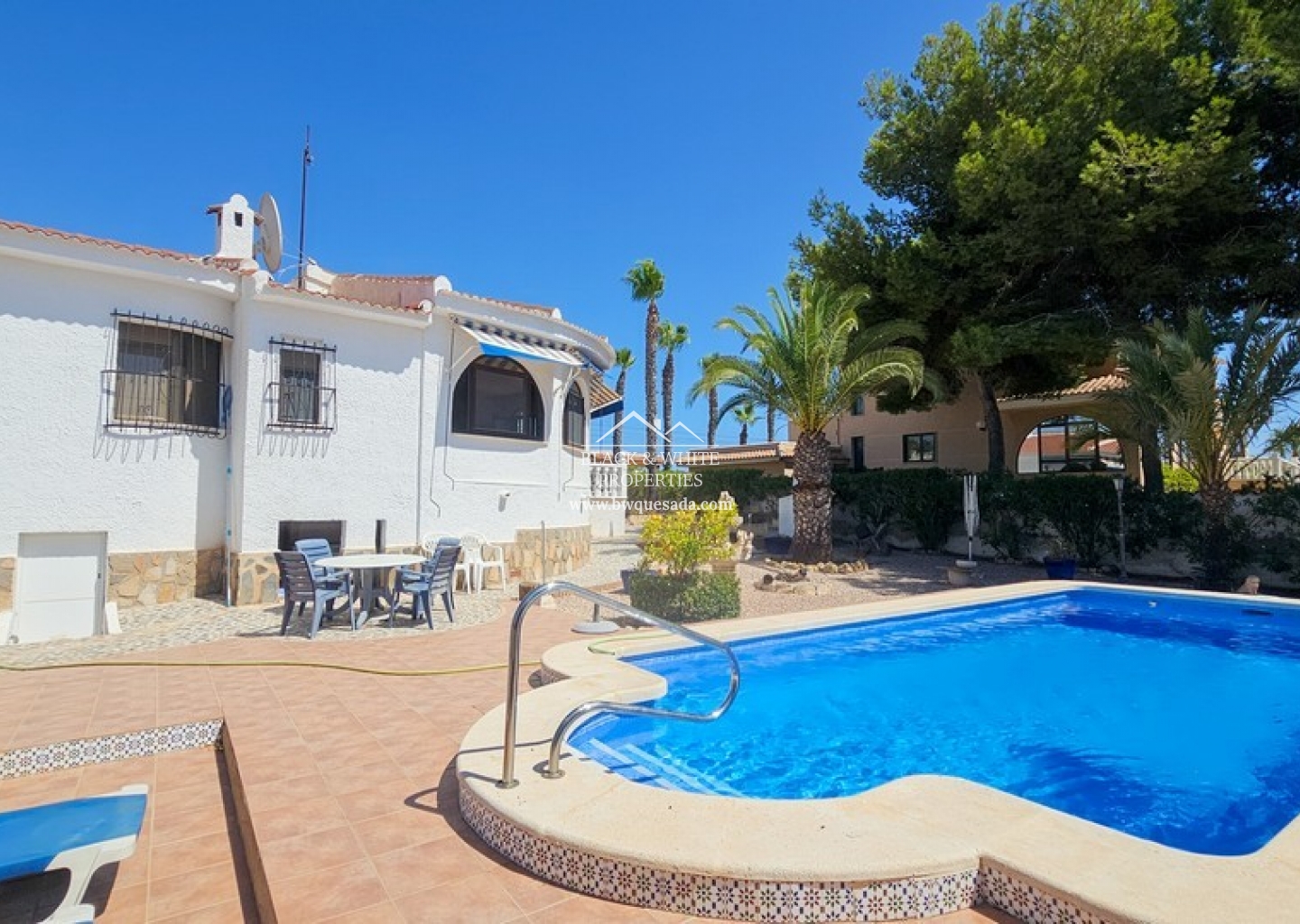 La parcela es grande, con una zona de barbacoa al costado de la casa, que es lo suficientemente grande para acomodar a 8 o 10 personas fácilmente y varios lugares para disfrutar del sol o la sombra. Dado que esta casa se encuentra en una de las zonas más deseables de Ciudad Quesada, el ambiente es muy tranquilo; sin embargo, el centro de la ciudad está a solo 10/15 minutos a pie.