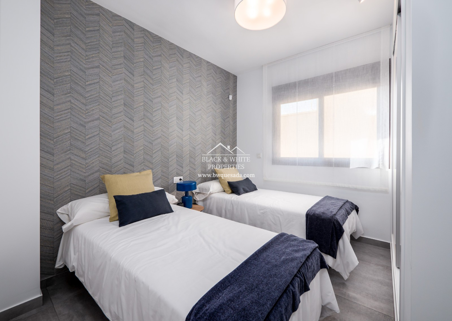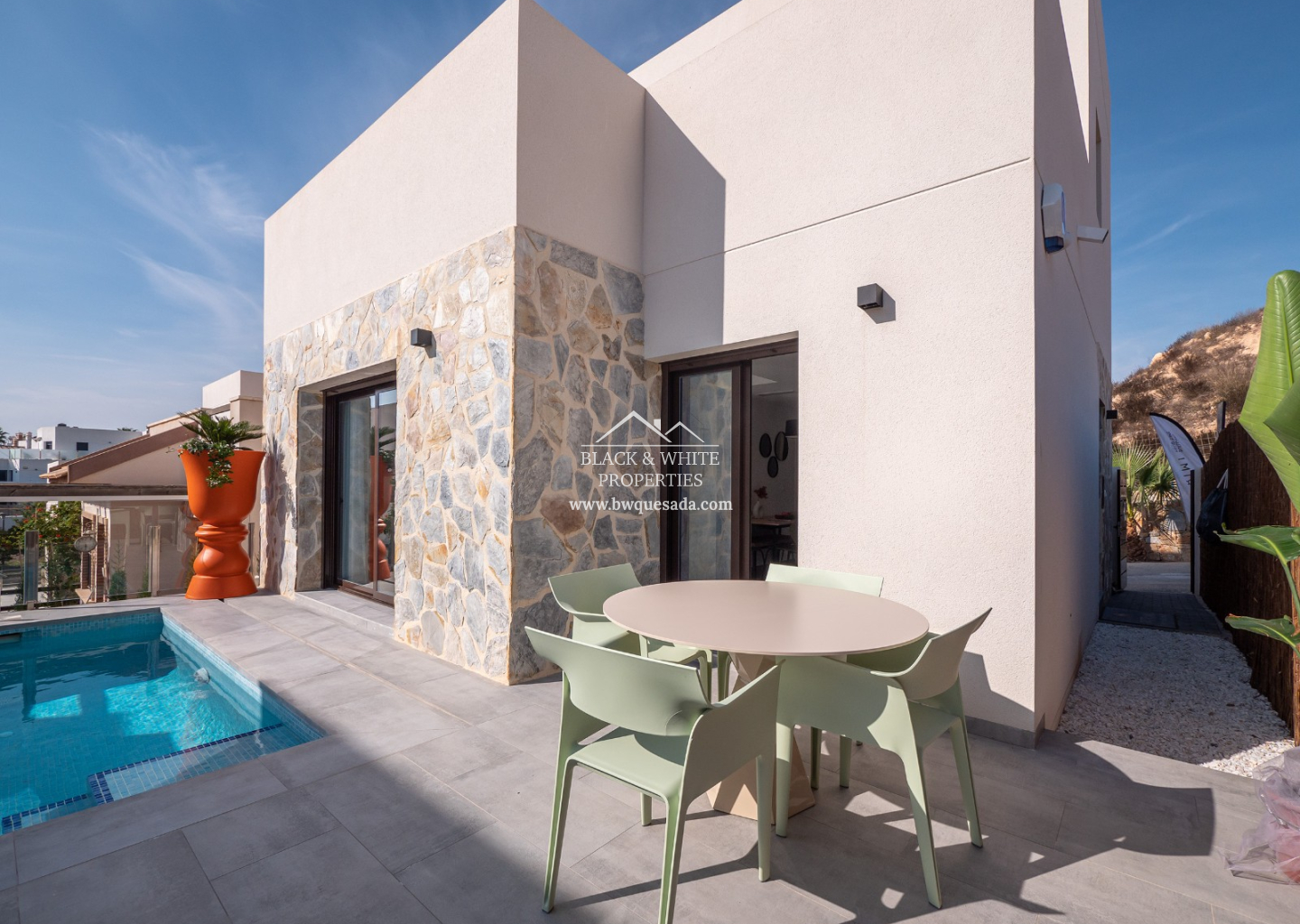 Ubicadas en el corazón de Villamartín, y rodeadas por la impresionante belleza natural de la Costa Blanca, estas villas ofrecen la perfecta armonía entre comodidad y estilo de vida mediterráneo. El MODELO B forma parte de un complejo compuesto por 25 villas distribuidas en dos niveles, con diferentes modelos disponibles: villas independientes o pareadas, de 2 o 3 dormitorios y 2 baños, cada una con su propio jardín privado y acceso a una zona comunitaria con piscina.