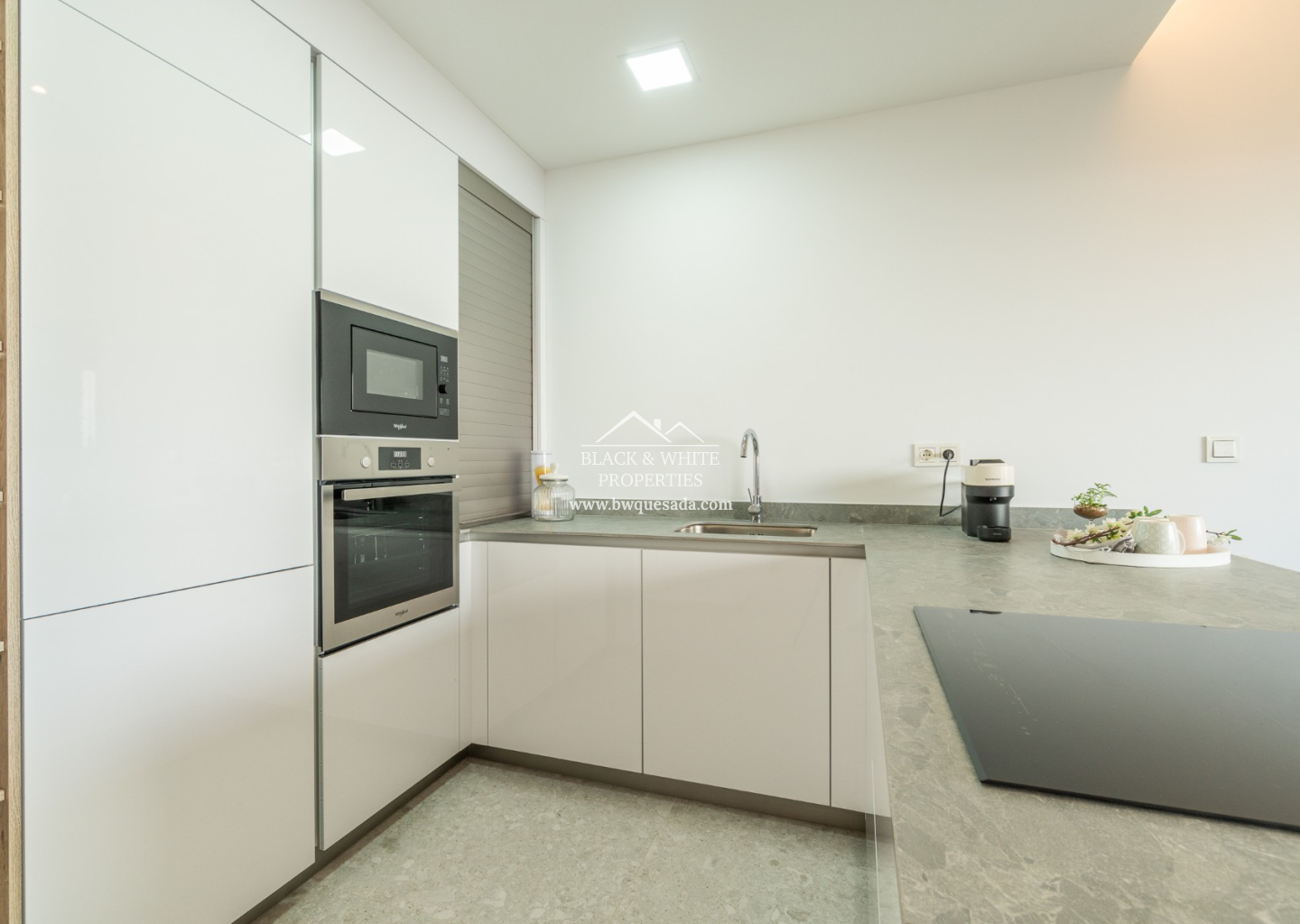 En las plantas superiores, se ha previsto la preinstalación para una cocina exterior, ideal para disfrutar del clima y las vistas.