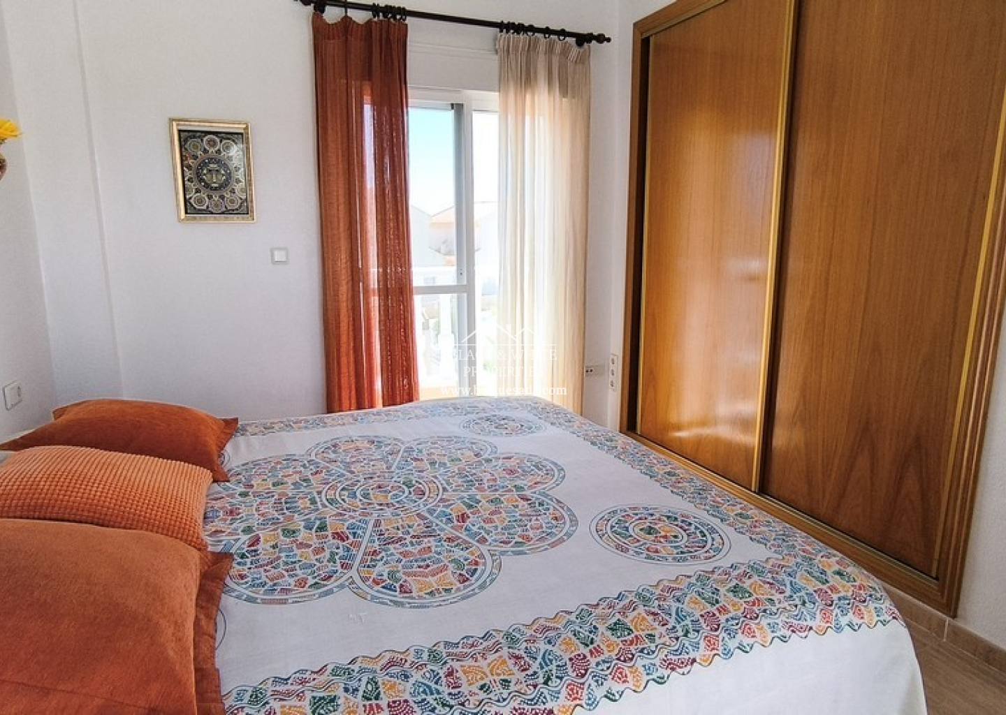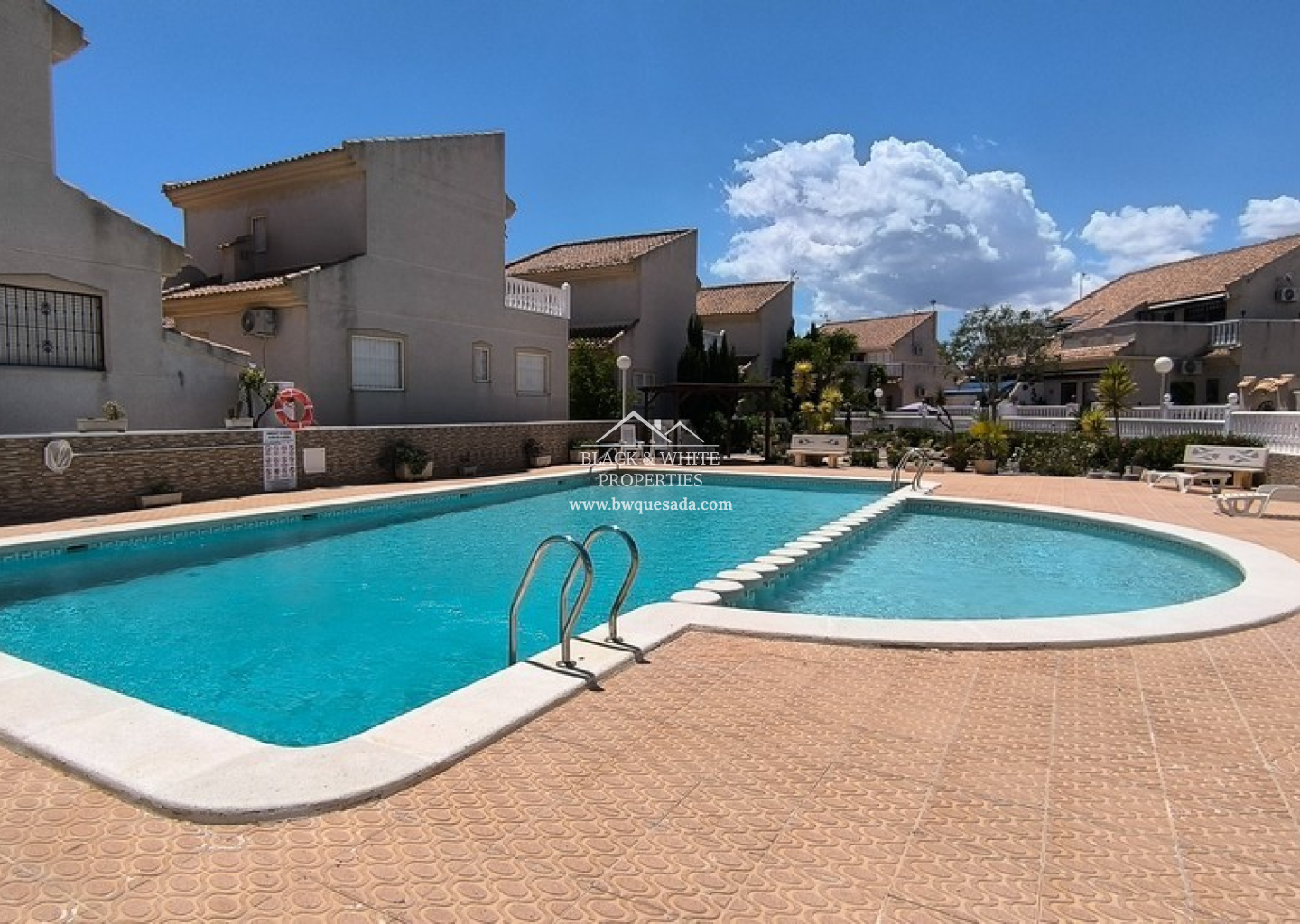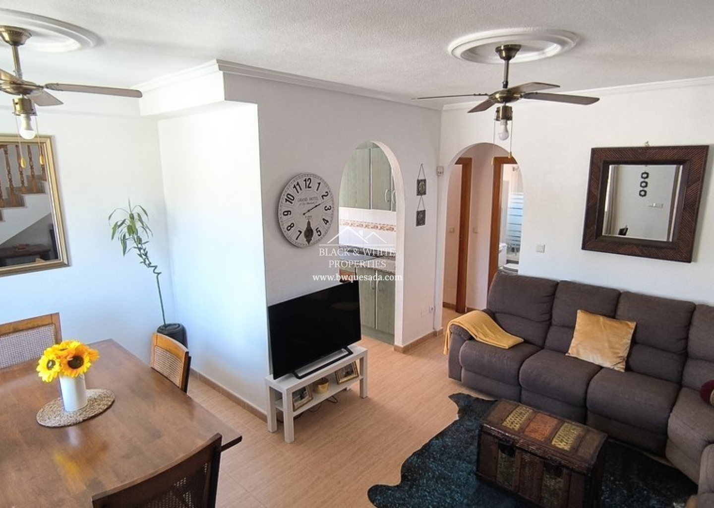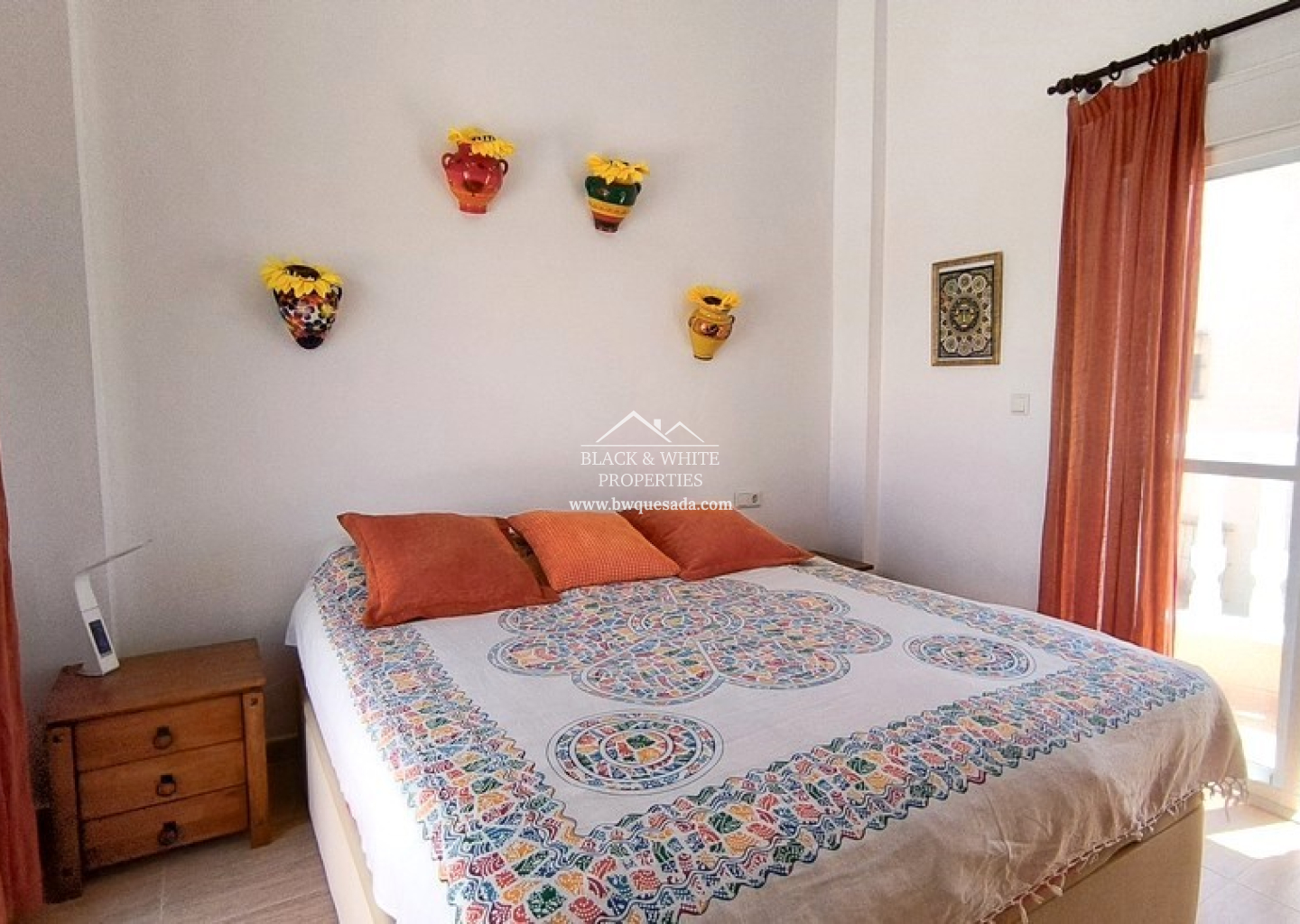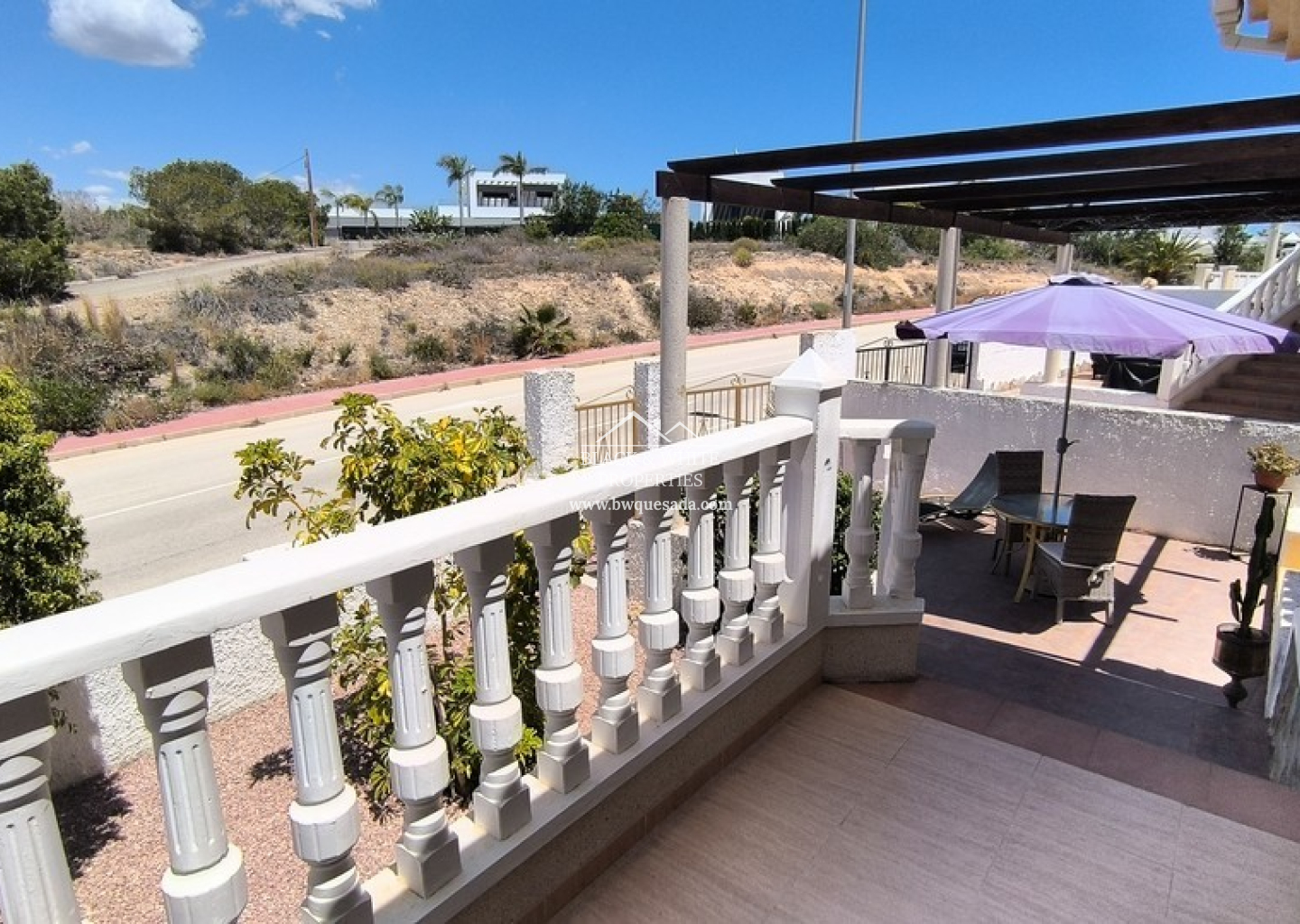 En el interior, la vivienda da la bienvenida con un salón-comedor luminoso y espacioso. La amplia cocina, bien equipada, conduce a un lavadero independiente que aporta practicidad adicional. En la planta baja se encuentran dos dormitorios de buen tamaño y un baño familiar, lo que permite la posibilidad de vivir en una sola planta si se desea. En la planta superior, el dormitorio principal es un verdadero refugio, con dos balcones privados. La villa dispone de aire acondicionado en el salón y se vende casi completamente amueblada.