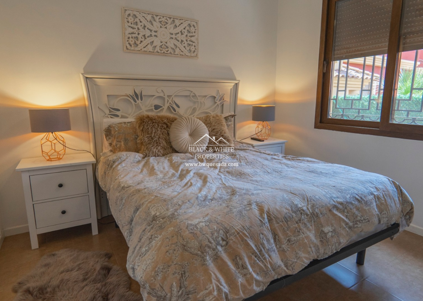 Villa independiente de 3 dormitorios ubicada en la urbanización Lo Crispin en Algorfa. Esta casa, con una presentación impecable, ofrece la combinación perfecta de lujo, comodidad y vida al aire libre. Situada en una amplia parcela la propiedad cuenta con piscina privada, jardines cuidados de bajo mantenimiento y múltiples zonas de estar al aire libre. Una característica destacable de esta vivienda es el amplio garaje, el cual cuenta con bar, sala de estar y mesa de billar. Disfrute de vistas panorámicas a la montaña desde el solárium de la azotea, donde además tienes un jacuzzi. El dormitorio principal cuenta con baño privado y vestidor, mientras que los dos dormitorios adicionales cuentan con armarios empotrados y comparten baño familiar con ducha a ras de suelo. Esta propiedad se vende amueblada, lista para entrar a vivir.