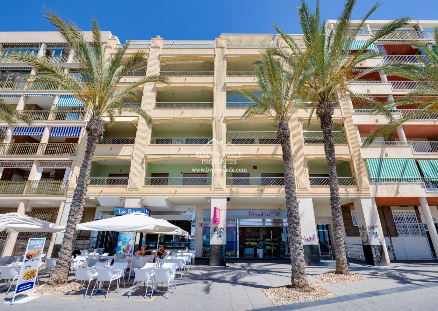 Descubre este magnífico apartamento situado en Torrevieja en la cuarta planta de un edificio con ascensor, en una ubicación privilegiada frente al mar. Con una superficie construida de 133 m², esta propiedad ofrece amplitud, comodidad y luz natural en cada rincón. La vivienda cuenta con 3 amplios dormitorios con armarios empotrados y 2 baños completos, se entrega totalmente amueblada y equipada, lista para entrar a vivir. Además, dispone de un solárium privado, ideal para tomar el sol o relajarse con vistas abiertas al mar. Incluye plaza de garaje en el precio.