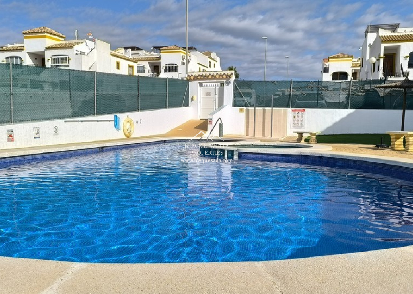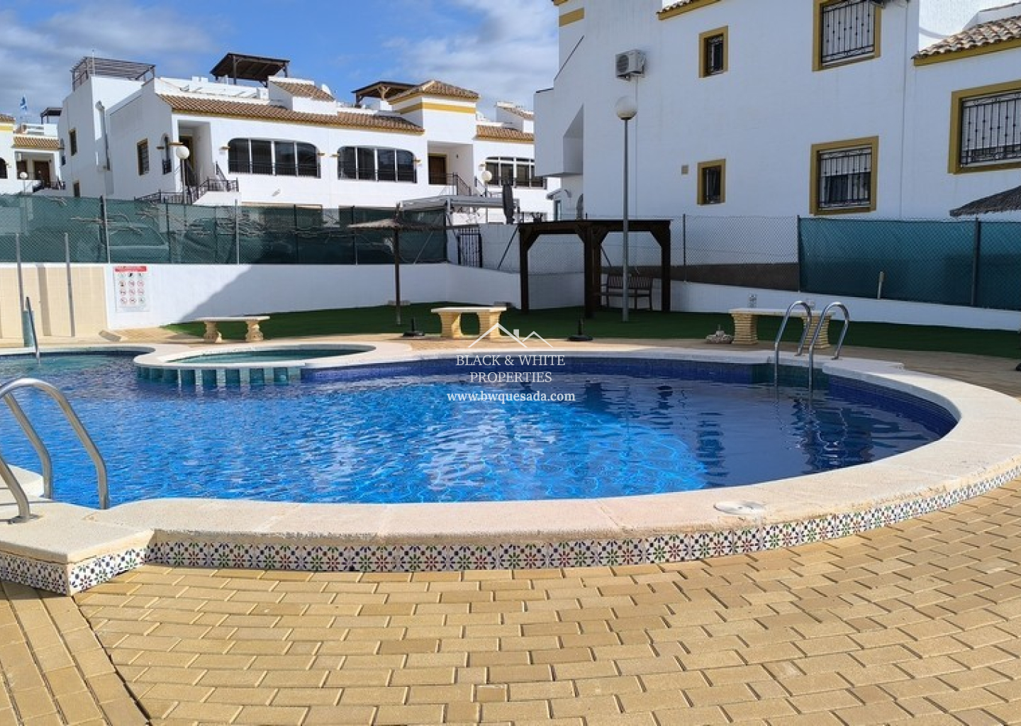 La propiedad forma parte de una comunidad bien cuidada, con una atractiva piscina y amplio espacio alrededor para tomar el sol y relajarse.
