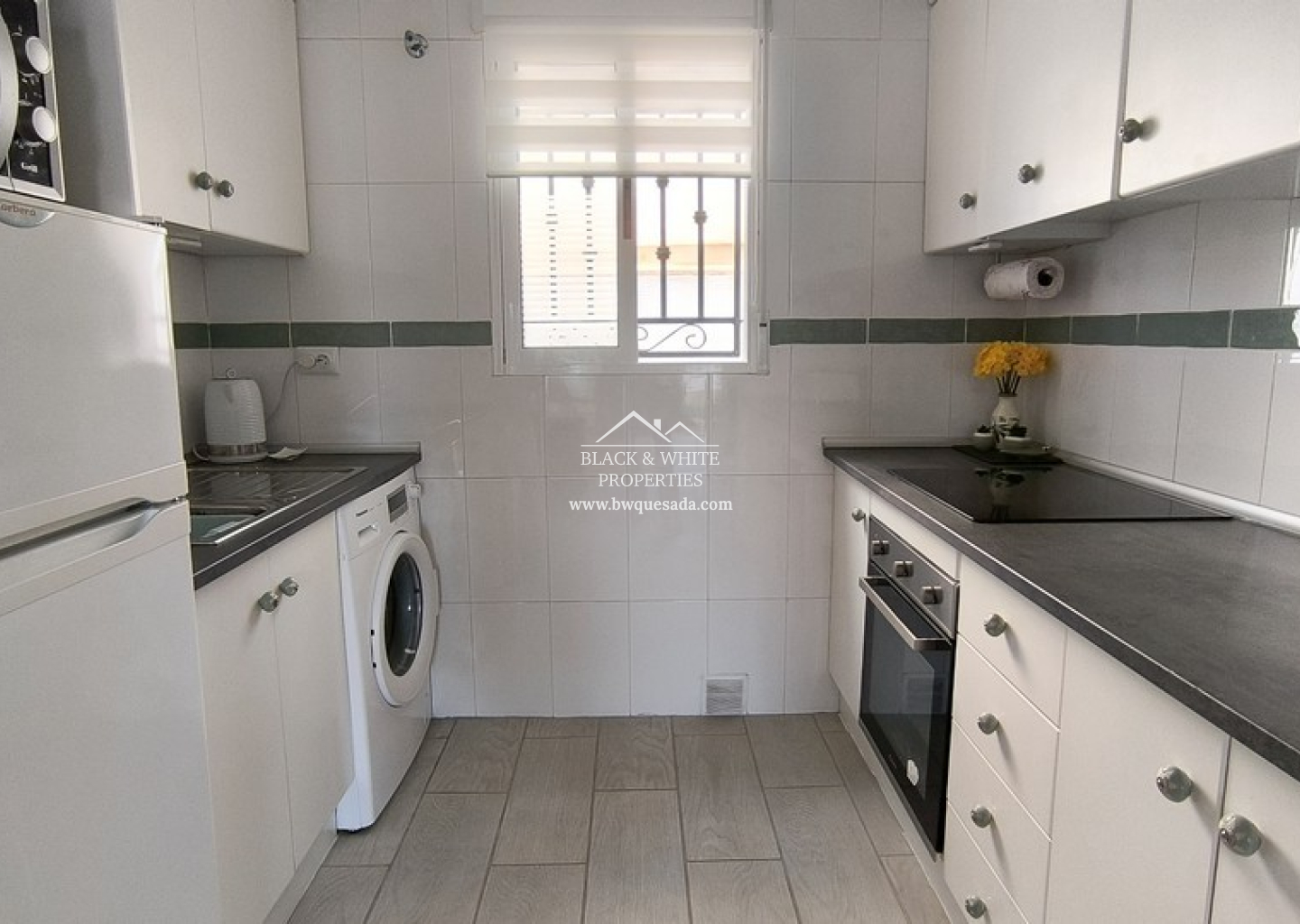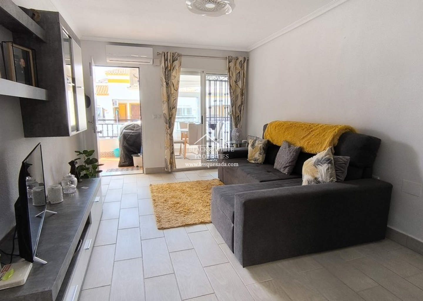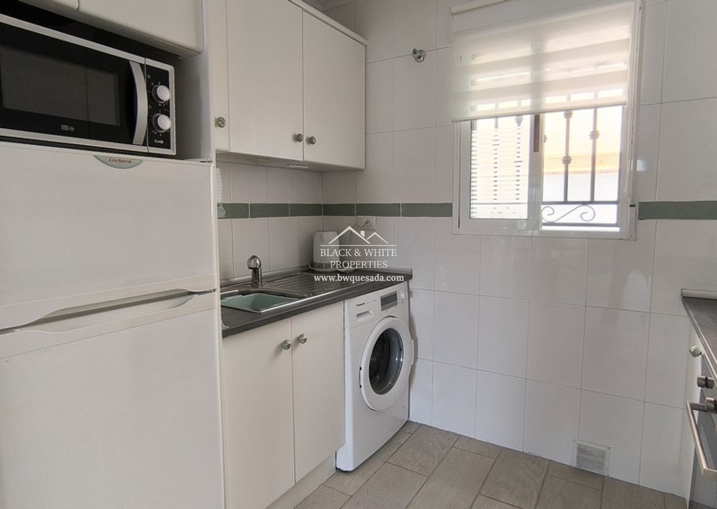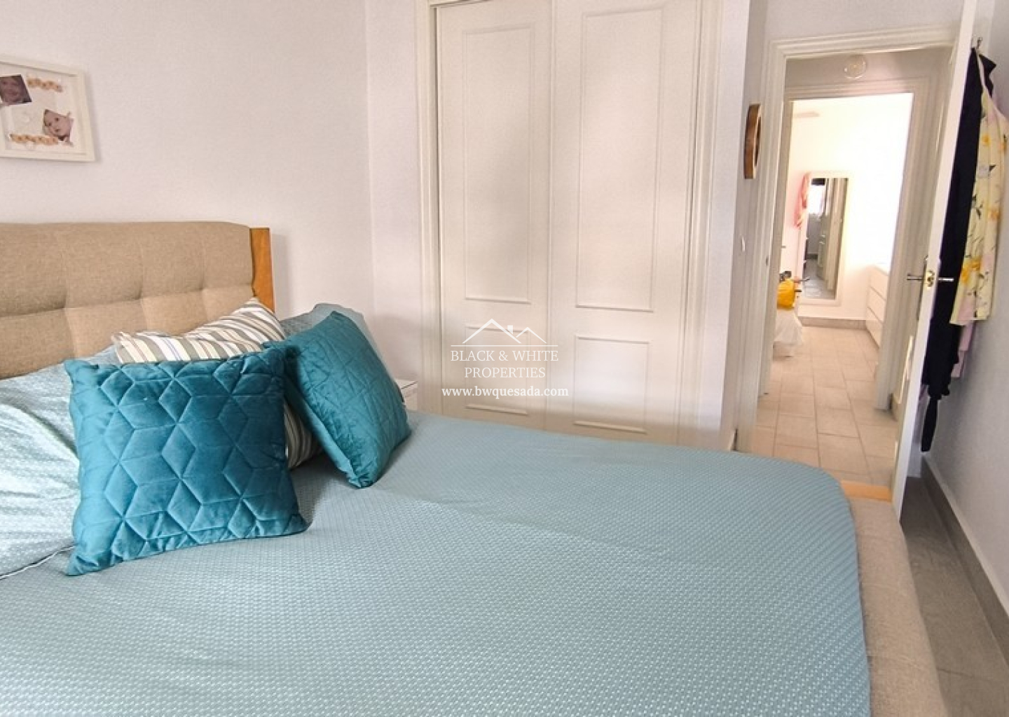 Ambos dormitorios son espaciosos e incluyen armarios empotrados, mientras que el baño familiar ha sido totalmente actualizado con acabados modernos. Una potente unidad de aire acondicionado en el salón garantiza confort durante todo el año.