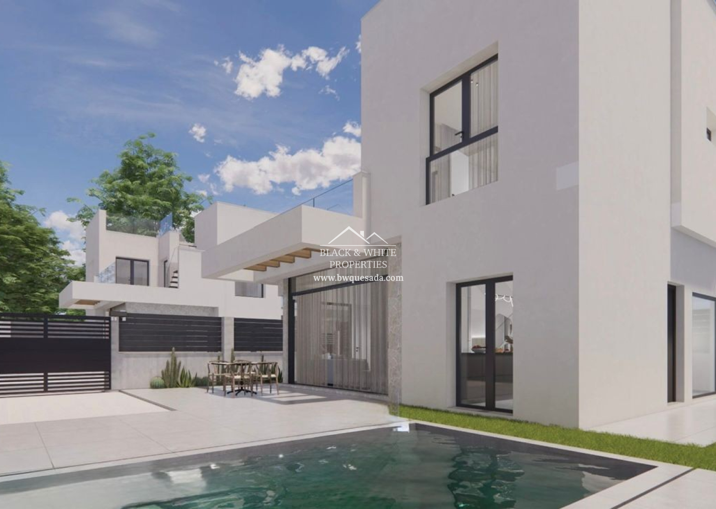dormitorios, amplias terrazas, zona ajardinada y piscina privada.