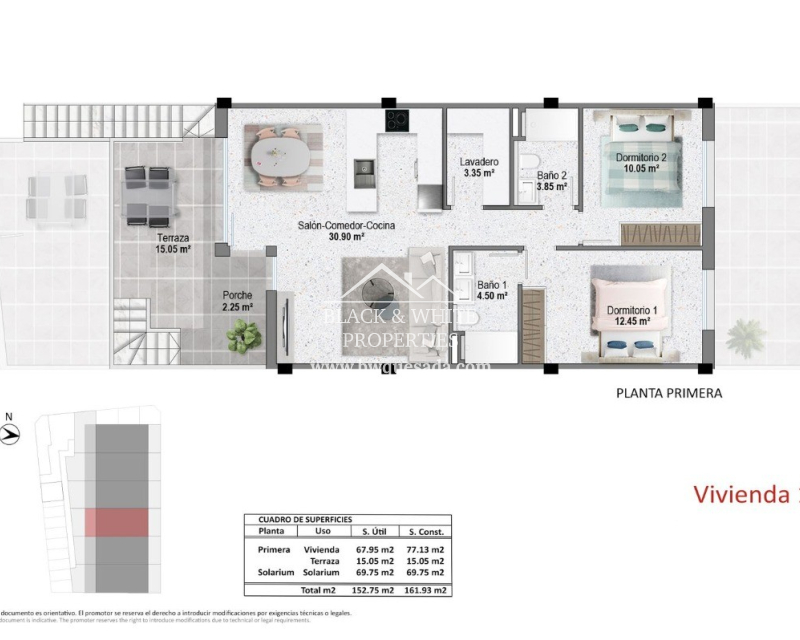 Tenemos el placer de presentaros esta magnífica promoción situada en Pilar de la Horadada, la cual trata de 12 apartamentos de primera calidad, con 3 habitaciones en las plantas bajas y 2 habitaciones en las plantas altas. Las plantas altas cuentan con un gran solarium de más de 65 m2 con privacidad donde puedes disfrutar de cocina de verano, pérgola y baño. El residencial cuenta con zonas verdes en común y piscina comunitaria. Incluido en el precio: