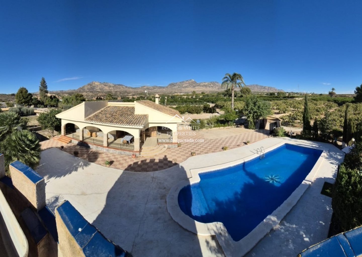 Villa independiente de 181 m² en Albatera (Alicante). Esta villa se encuentra en Albatera, cerca de las plantaciones de cítricos. Al entrar en la propiedad por el portal, descubrirá una agradable piscina rodeada por un jardín de 1.182 m², un chalet de madera y una zona de cocina exterior con barbacoa. La casa está rodeada en gran parte por una amplia terraza cubierta. En el interior, encontrará una cocina equipada con un trastero, abierta a un luminoso salón–comedor con chimenea. En la prolongación se encuentra la zona de noche, compuesta por tres dormitorios dobles con armarios empotrados, servidos por un baño con ducha a ras de suelo. La casa se vende completamente amueblada.