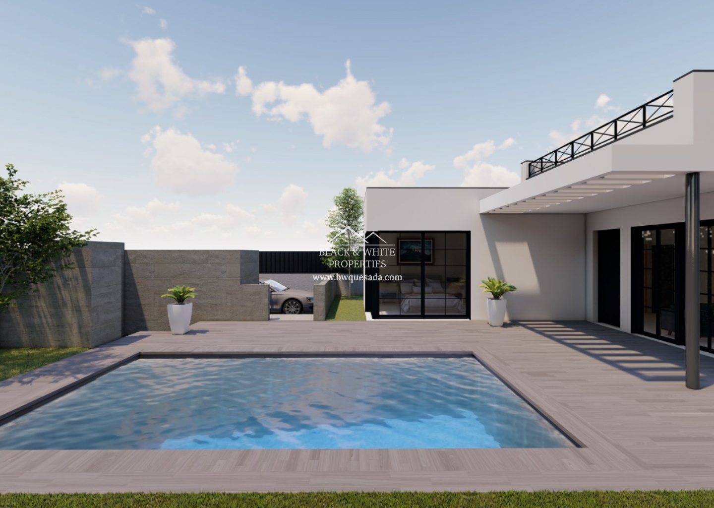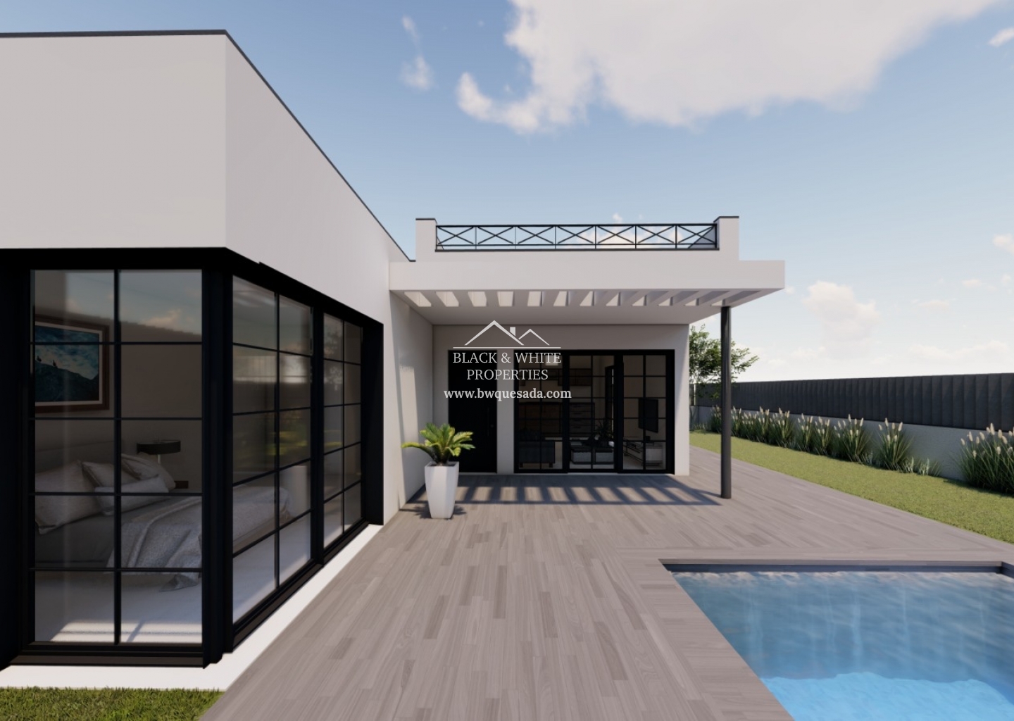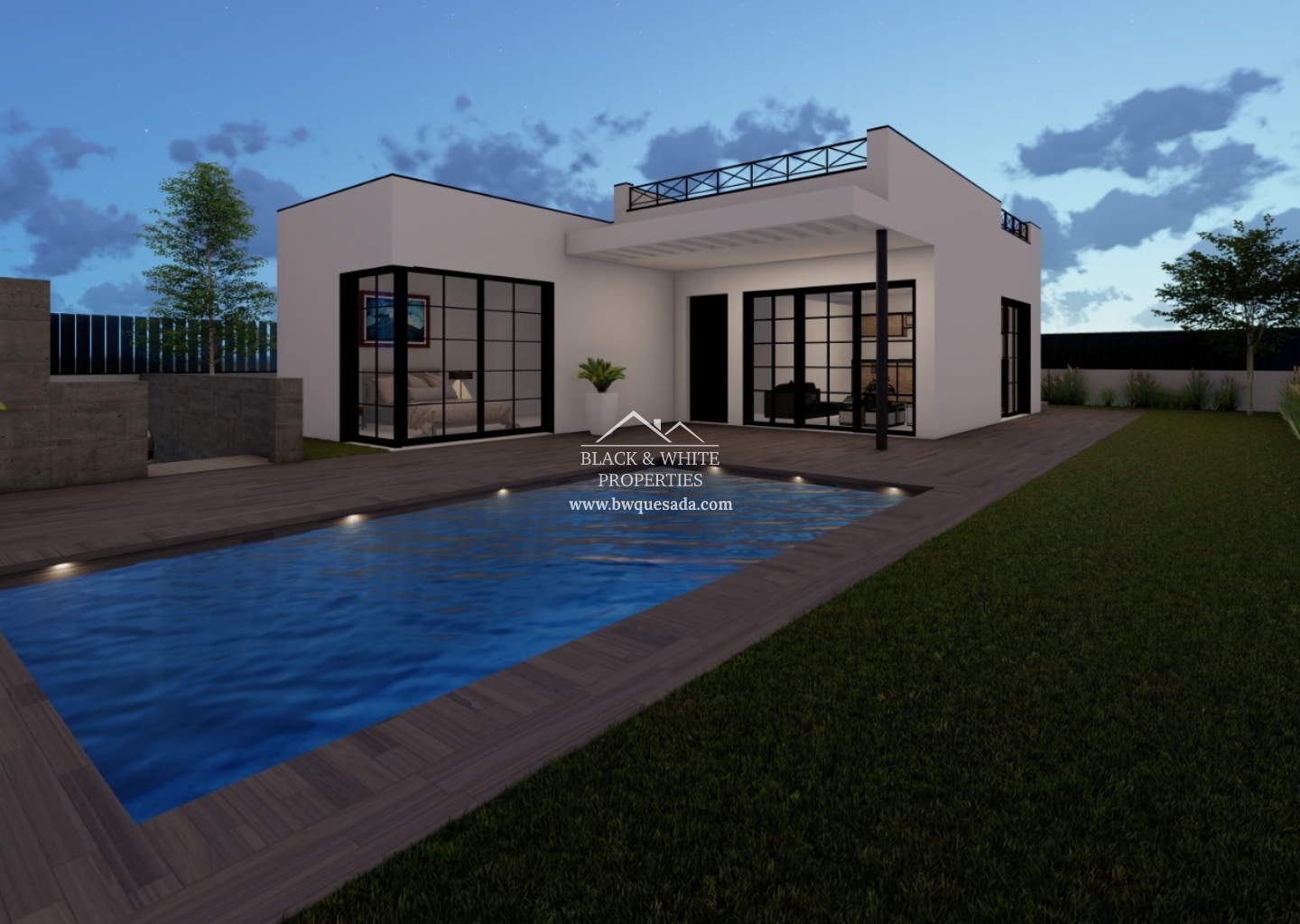 Villa de nueva construcción situada en Ciudad Quesada con 3 dormitorios y 2 baños, vivienda de 100m2 y parcela de 300m2 cuenta con piscina privada y todo incluido.