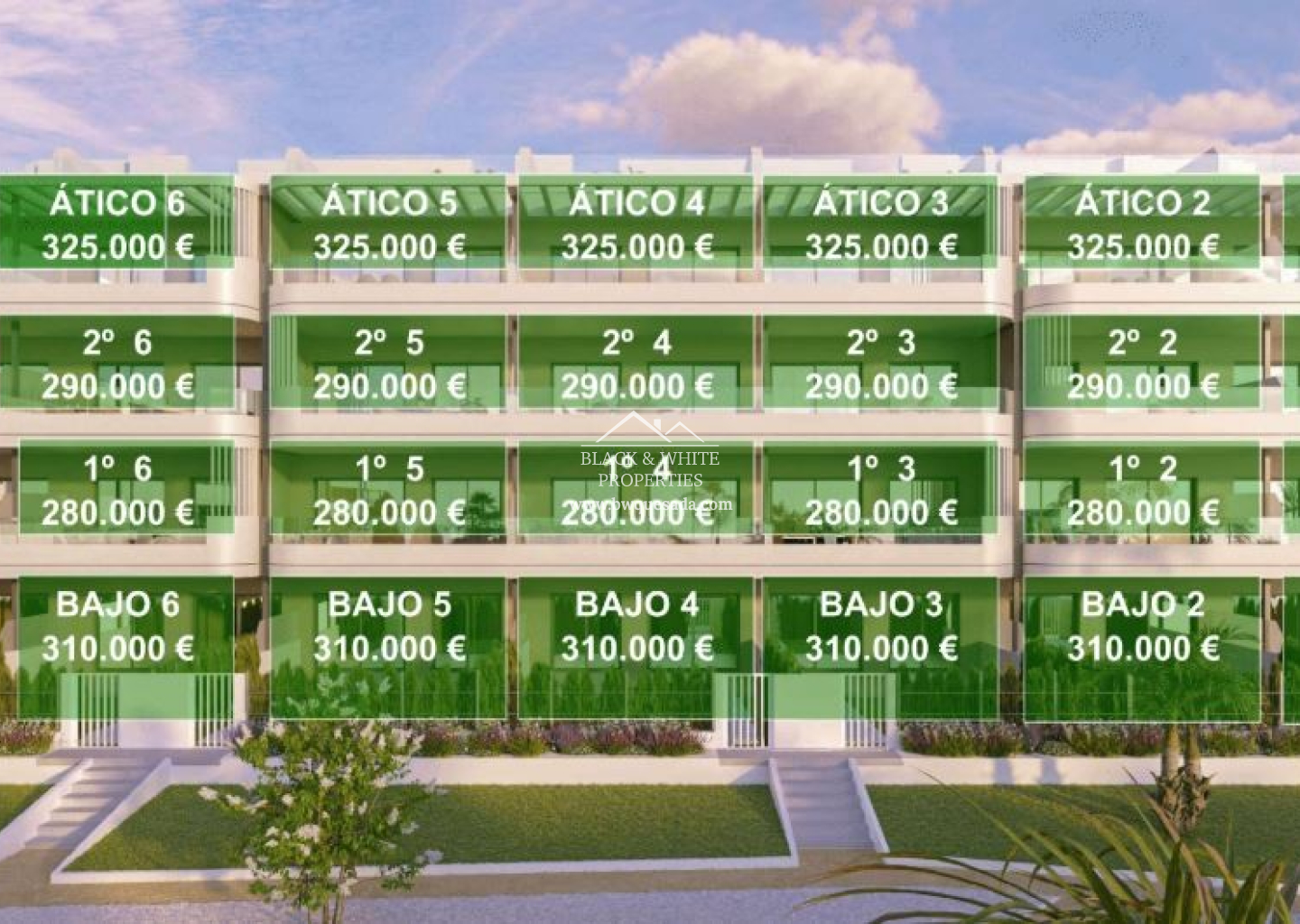 Tenemos el placer de presentaros esta estupenda promoción de obra nueva situada en Torrevieja, la cual trata de apartamentos de 2 y 3 dormitorios, cerca de todos los servicios. Este complejo residencial incluye gimnasio, spa, sauna, piscinas comunitarias, pistas de pádel, parking subterráneo y trasteros. Los precios son los siguientes: