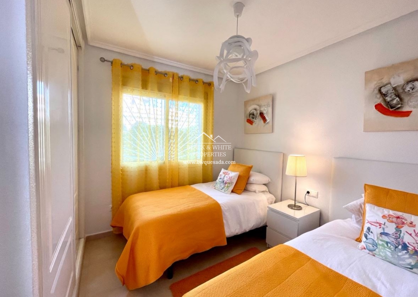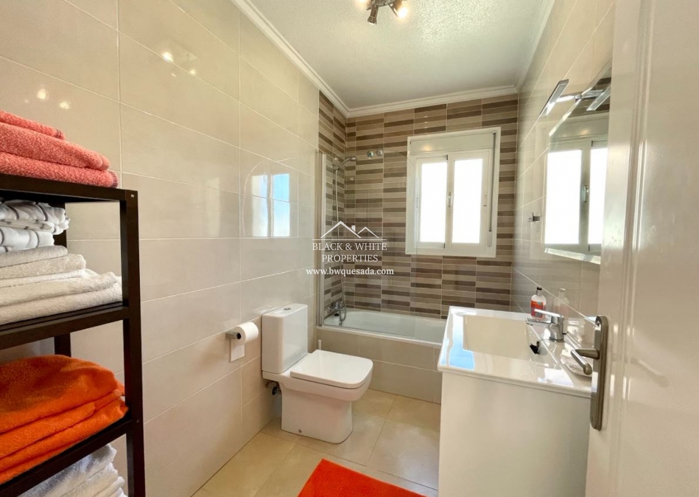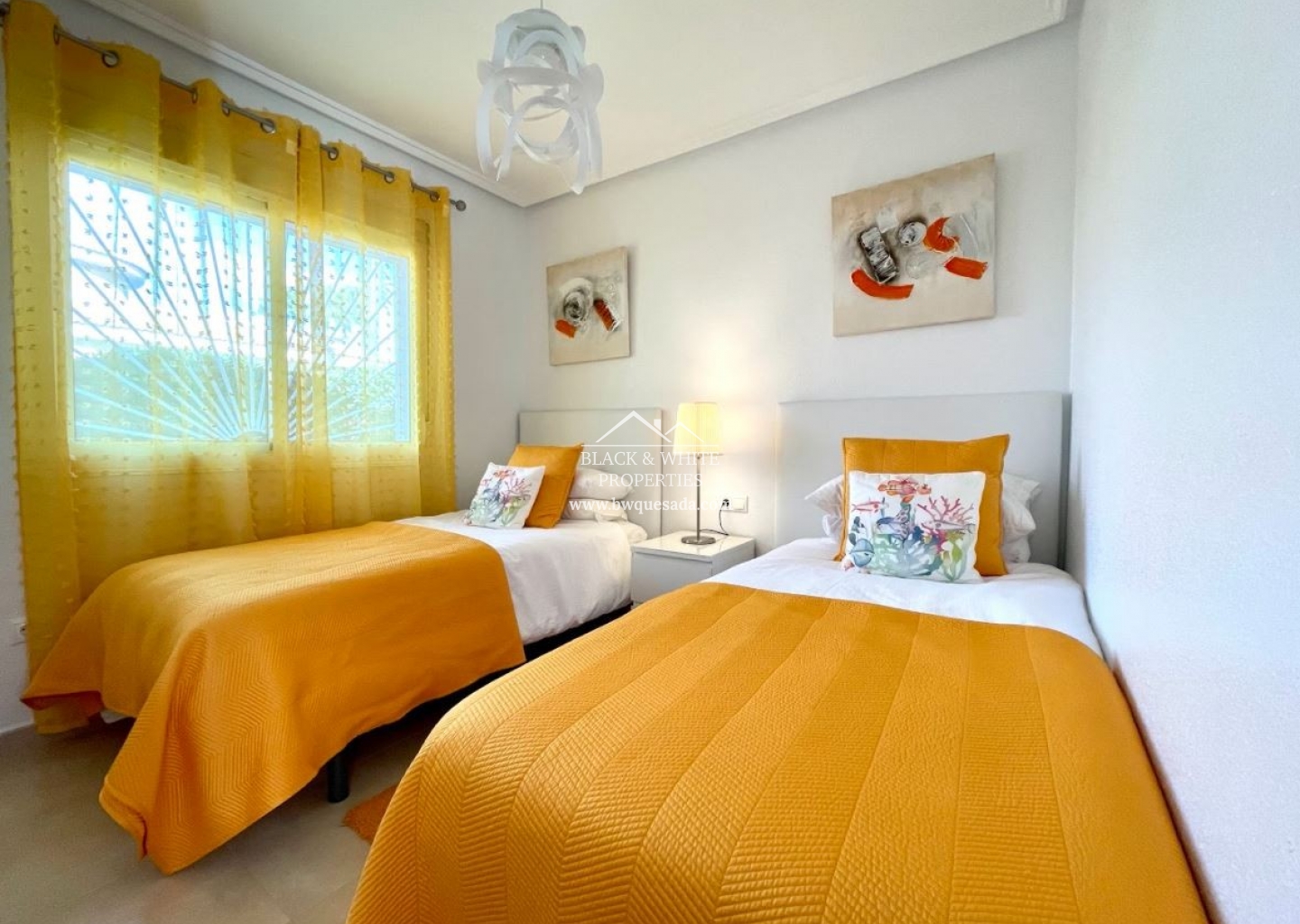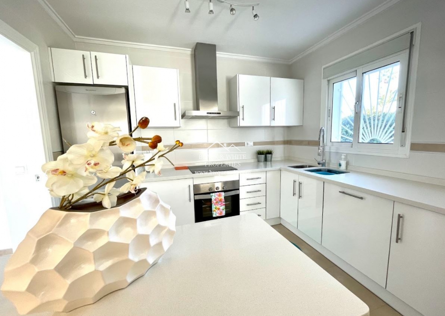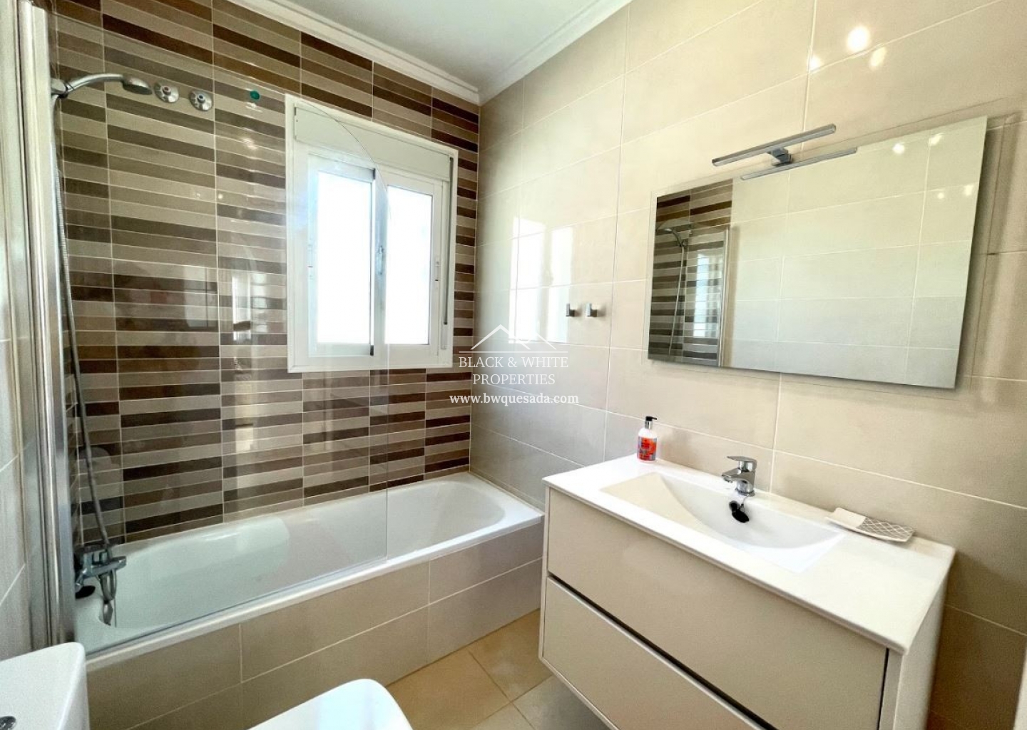 Estupenda villa situada en Ciudad Quesada en la zona de Doña pepa, villa soleada y luminosa con 3 dormitorios, uno de ellos totalmente nuevo construido recién. Cuenta con 2 baños uno de ellos ensuite. En el exterior, tenemos un gran jardín con piscina privada, solarium, árboles de frutos étc. A pocos minutos, hay comercios, restaurantes y más.