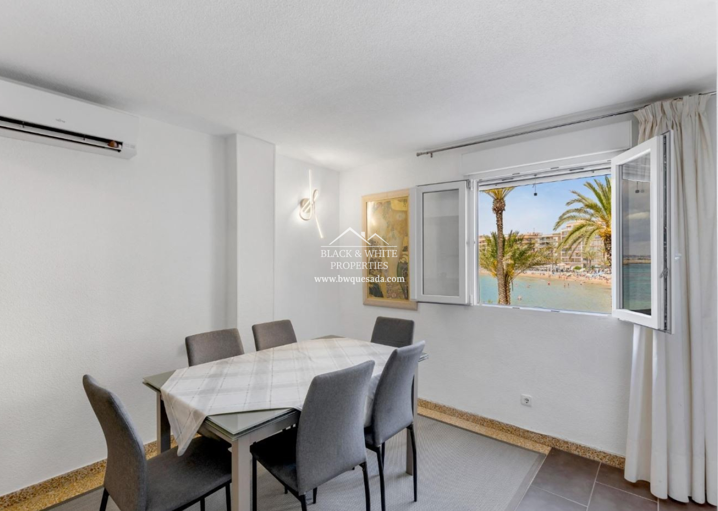 Apartamento situado en primera planta, con impresionantes vistas directas a la Playa del Cura. Una vivienda luminosa y espaciosa, ideal tanto como residencia habitual como para disfrutar de tus vacaciones junto al mar. La propiedad se compone de tres amplios dormitorios, perfectos para familias o para recibir invitados con total comodidad, y dos cuartos de baño completos. La zona de día está formada por un salón con dos grandes ventanas frontales, desde donde podrás disfrutar de unas vistas espectaculares al mar, además de una zona de comedor y una cocina funcional y bien distribuida.