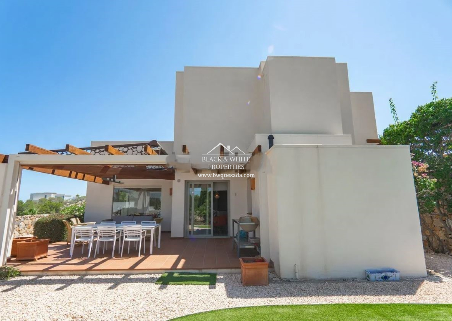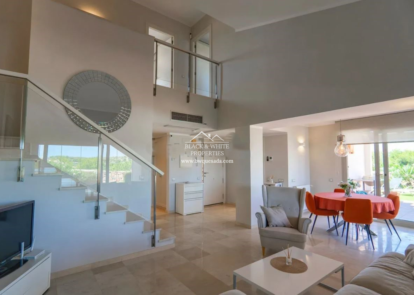 Casa unifamiliar de 3 dormitorios y 3 baños ubicada en el prestigioso Las Colinas Golf & Country Club. Ubicada en una parcela elevada de 860 m². Al entrar, encontrará un luminoso salón-comedor de planta abierta, decorado con gusto y con un impresionante techo de doble altura. Las amplias puertas acristaladas del patio maximizan las vistas y conducen directamente a los jardines, todos ellos bellamente cuidados. La terraza acristalada, tanto interior como exterior. La cocina moderna, de diseño impecable, cuenta con un lavadero independiente. El espacioso dormitorio de la planta baja ofrece un patio exterior privado y un baño con ducha enfrente. En la planta superior, le esperan dos amplios dormitorios, el principal con baño en suite, vestidores y un lujoso baño principal. El jardín envolvente está diseñado para la relajación y el entretenimiento, con patios, terrazas y terrazas acristaladas que combinan a la perfección la vida interior y exterior. Con amplio espacio para una piscina privada sin sacrificar espacio ni vistas impresionantes. Como alternativa, al final del jardín, disfrute de la gran piscina comunitaria con duchas y baños, accesible solo por unas pocas propiedades.