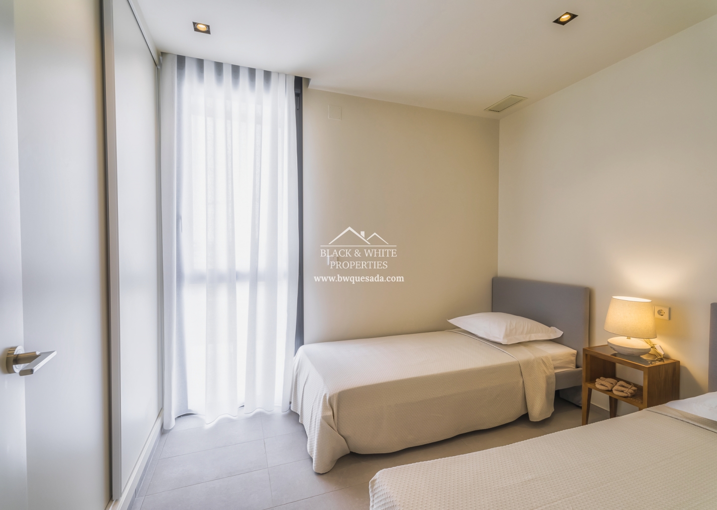 La planta superior acomoda dos o tres amplios dormitorios, dependiendo de la casa adosada a elegir y dos baños. En el modelo de dos dormitorios, el dormitorio principal tiene vestidor y acceso a una terraza soleada, mientras que en el modelo de tres dormitorios, todos los dormitorios tienen armarios empotrados.