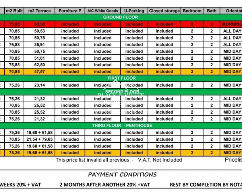 Un nuevo complejo de lujo de apartamentos completamente amueblados con 2 dormitorios, 2 baños y amplias terrazas, ubicado en Playa Flamenca, cerca del mar. ¡La mayoría de los apartamentos tienen vistas al mar! Puedes elegir entre apartamentos en planta baja con jardín, apartamentos en primera y segunda planta con terraza, o áticos (con solárium) en tercera planta.