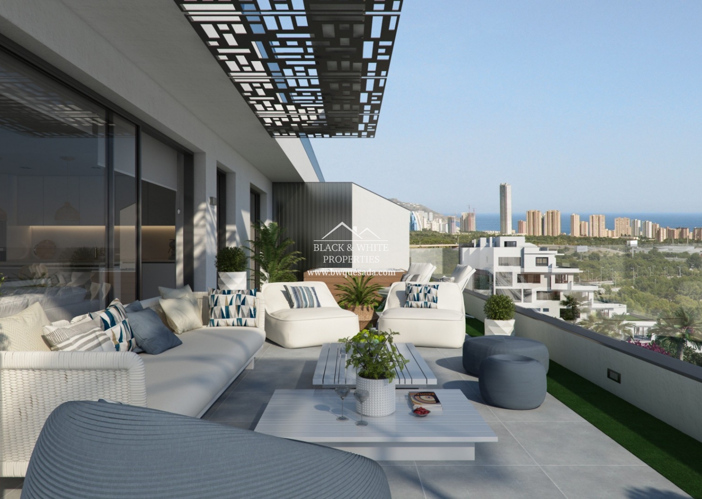Sentez la brise marine et le bleu de la Méditerranée depuis ce magnifique penthouse avec une terrasse privée et une pré-installation pour un jacuzzi. Avec une vue privilégiée sur les toits de Benidorm, ce penthouse exclusif portera votre qualité de vie à un autre niveau. Sa conception intelligente tire parti de l'architecture décalée de l'urbanisation afin que vous puissiez profiter pleinement de l'environnement, des vues et de la lumière. Une maison moderne équipée des meilleures technologies appliquées au confort : climatisation aérothermique et isolation thermique et acoustique dans toutes les pièces et une cuisine équipée d'appareils électroménagers. Nous avons utilisé, tant à l'extérieur qu'à l'intérieur de la maison, des matériaux à haute efficacité énergétique afin que vous puissiez profiter du plaisir de vous sentir chez vous à tout moment de l'année. Et si vivre ici est déjà un luxe, ne manquez pas les espaces communs auxquels vous aurez accès : piscines (dont une chauffée), salle de sport, terrain de paddle-tennis, aire de jeux pour enfants, salle de coworking, club social... Et tout de l'intimité et de l'exclusivité d'une petite communauté de propriétaires. Améliorez votre qualité de vie et faites du bleu de la Méditerranée la couleur de vos journées !