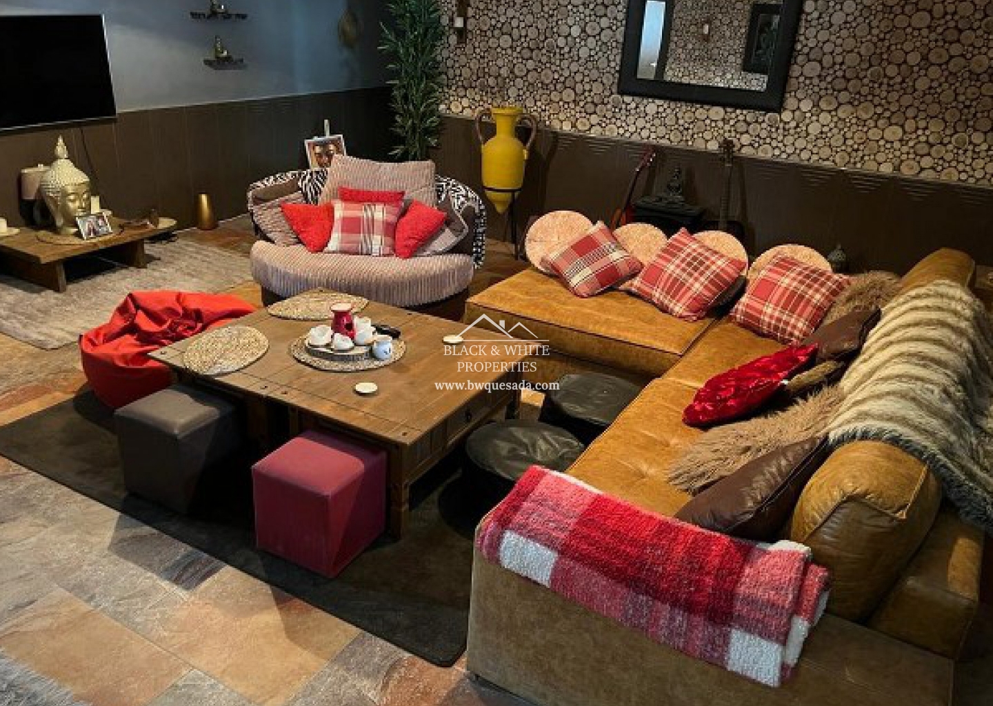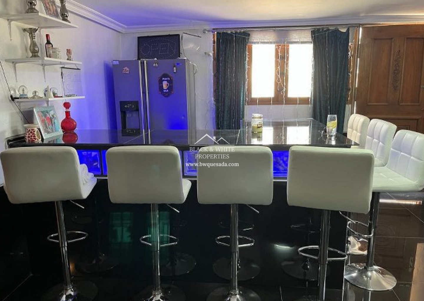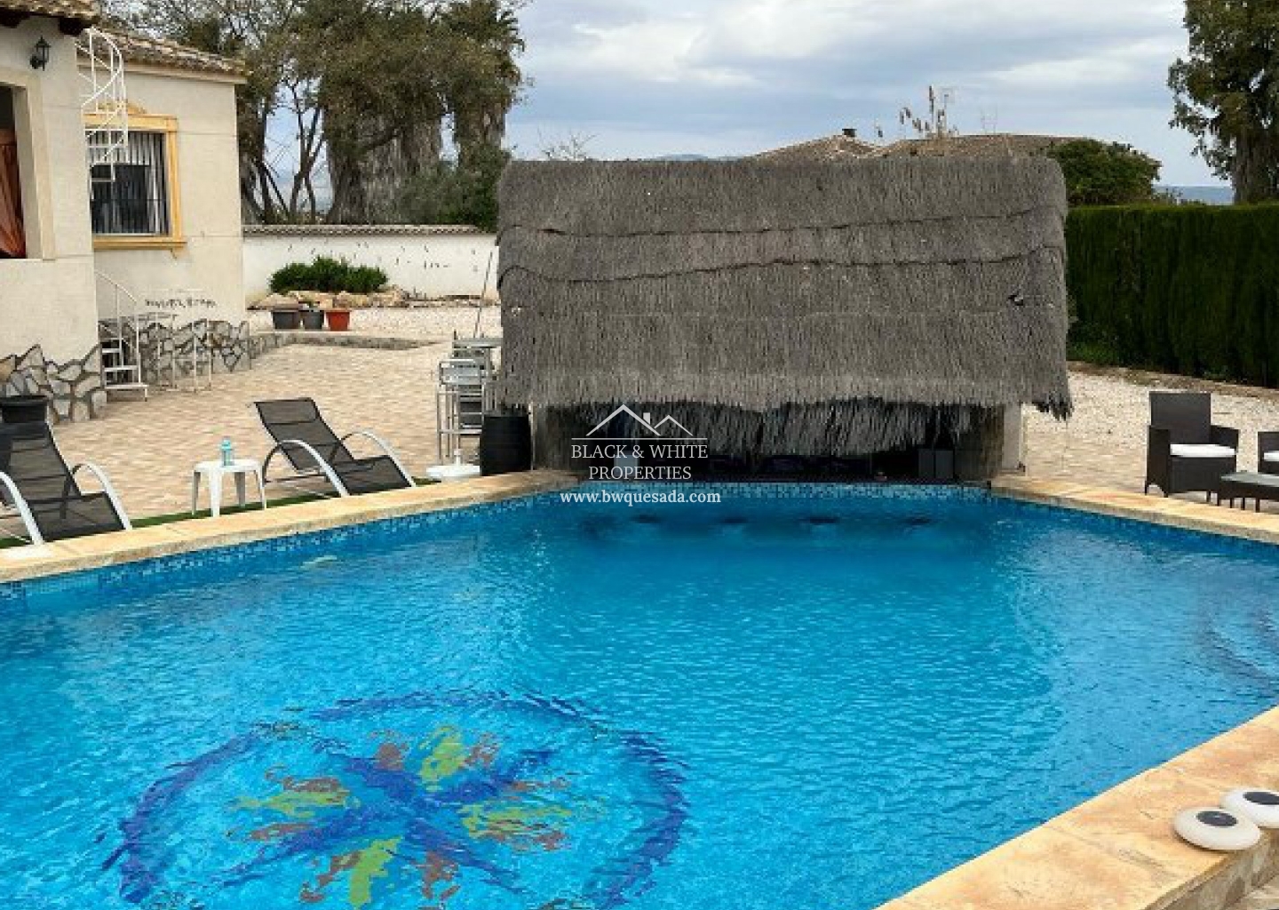 À l'extérieur, le terrain a de hauts murs sécurisés, ce qui le rend très privé, avec un portail électrique de sécurité pour un accès facile et un système de vidéosurveillance. Sur le côté de la maison, un escalier mène à un grand solarium meublé avec une vue fantastique sur la région. Le jardin est principalement recouvert de bardeaux décoratifs mais possède une grande zone carrelée entourant la maison qui comprend également la piscine pour un faible entretien. La piscine privée est parfaite pour les nageurs avec une taille de 12 mètres x 5 mètres avec un jacuzzi intégré à une extrémité, et également à l'extrémité opposée, un bar sur mesure. Il y a aussi une cuisine d'été, avec beaucoup d'espace pour se détendre et idéale pour recevoir famille et amis. Pour tous ceux qui aiment rester en forme, cette propriété dispose également d'une salle de sport couverte sur mesure avec tout ce dont vous avez besoin pour rester en forme. La parcelle est divisée en deux sections, toutes deux de taille similaire, mais la première est la zone principale utilisée, avec des palmiers et des plantes matures. L'autre partie du jardin présente de nombreuses caractéristiques intéressantes, notamment plusieurs arbres fruitiers. De plus, vous disposez d'un très grand garage pouvant accueillir plusieurs véhicules, qui pourrait facilement être converti en casita pour les invités. La villa est actuellement mise en vente comme partiellement meublée et serait soumise à un inventaire mais inclurait tous les produits blancs dans le prix de vente et bénéficierait de la fibre optique déjà installée ainsi que d'un système d'alarme et de la climatisation. Cette propriété est livrée avec tous les documents légaux requis pour la vente, y compris un certificat d'habitation. Il dispose d'un raccordement à l'eau courante et est également raccordé à un réseau électrique et à une fosse septique pour les déchets. La propriété a une énorme liste d'extras trop nombreux pour être énumérés, mais en voici quelques-uns : un grand sous-sol, chauffage central, fenêtres et portes en aluminium, cuisine avec plans de travail en granit, climatisation chaud et froid, alarme, parking hors route , ligne téléphonique, avec plusieurs cabanons et serre et bien plus encore. Cette villa est en excellent état et dans un endroit calme à la campagne, parfaite si vous recherchez une retraite rurale avec une intimité totale et pas trop loin des services. Il est également possible de louer l'annexe séparée pour les invités ou d'utiliser l'espace de la parcelle pour d'autres opportunités commerciales.
