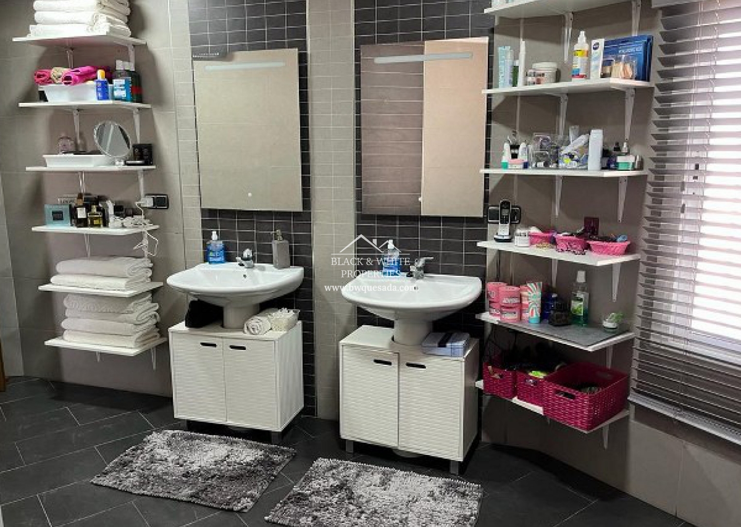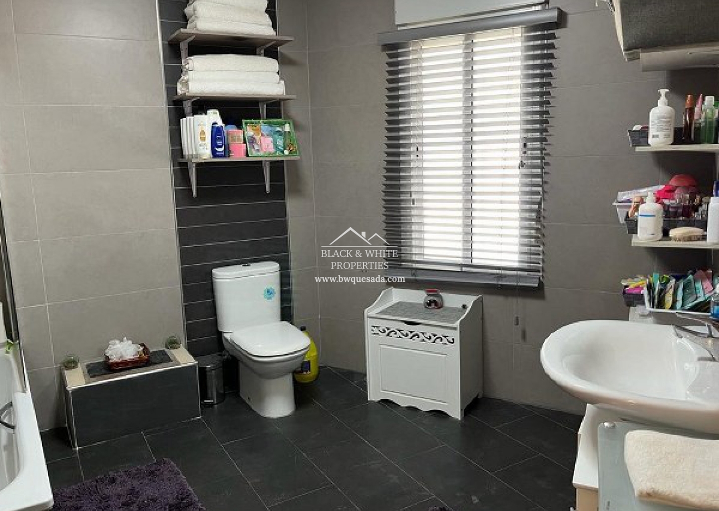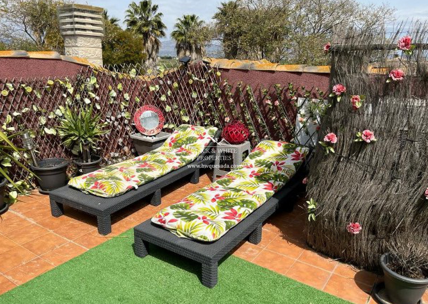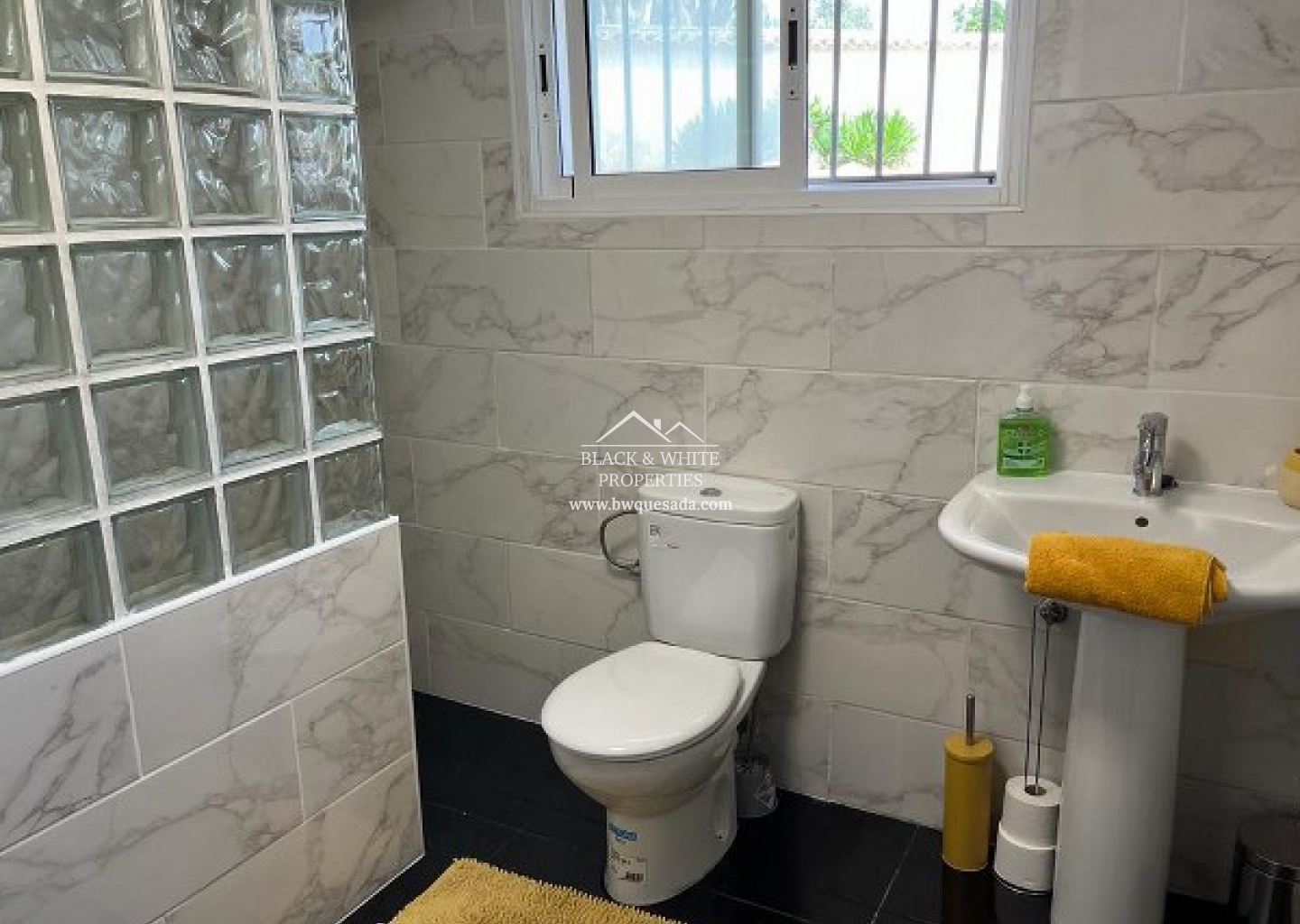 À l'extérieur, le terrain a de hauts murs sécurisés, ce qui le rend très privé, avec un portail électrique de sécurité pour un accès facile et un système de vidéosurveillance. Sur le côté de la maison, un escalier mène à un grand solarium meublé avec une vue fantastique sur la région. Le jardin est principalement recouvert de bardeaux décoratifs mais possède une grande zone carrelée entourant la maison qui comprend également la piscine pour un faible entretien. La piscine privée est parfaite pour les nageurs avec une taille de 12 mètres x 5 mètres avec un jacuzzi intégré à une extrémité, et également à l'extrémité opposée, un bar sur mesure. Il y a aussi une cuisine d'été, avec beaucoup d'espace pour se détendre et idéale pour recevoir famille et amis. Pour tous ceux qui aiment rester en forme, cette propriété dispose également d'une salle de sport couverte sur mesure avec tout ce dont vous avez besoin pour rester en forme. La parcelle est divisée en deux sections, toutes deux de taille similaire, mais la première est la zone principale utilisée, avec des palmiers et des plantes matures. L'autre partie du jardin présente de nombreuses caractéristiques intéressantes, notamment plusieurs arbres fruitiers. De plus, vous disposez d'un très grand garage pouvant accueillir plusieurs véhicules, qui pourrait facilement être converti en casita pour les invités. La villa est actuellement mise en vente comme partiellement meublée et serait soumise à un inventaire mais inclurait tous les produits blancs dans le prix de vente et bénéficierait de la fibre optique déjà installée ainsi que d'un système d'alarme et de la climatisation. Cette propriété est livrée avec tous les documents légaux requis pour la vente, y compris un certificat d'habitation. Il dispose d'un raccordement à l'eau courante et est également raccordé à un réseau électrique et à une fosse septique pour les déchets. La propriété a une énorme liste d'extras trop nombreux pour être énumérés, mais en voici quelques-uns : un grand sous-sol, chauffage central, fenêtres et portes en aluminium, cuisine avec plans de travail en granit, climatisation chaud et froid, alarme, parking hors route , ligne téléphonique, avec plusieurs cabanons et serre et bien plus encore. Cette villa est en excellent état et dans un endroit calme à la campagne, parfaite si vous recherchez une retraite rurale avec une intimité totale et pas trop loin des services. Il est également possible de louer l'annexe séparée pour les invités ou d'utiliser l'espace de la parcelle pour d'autres opportunités commerciales.