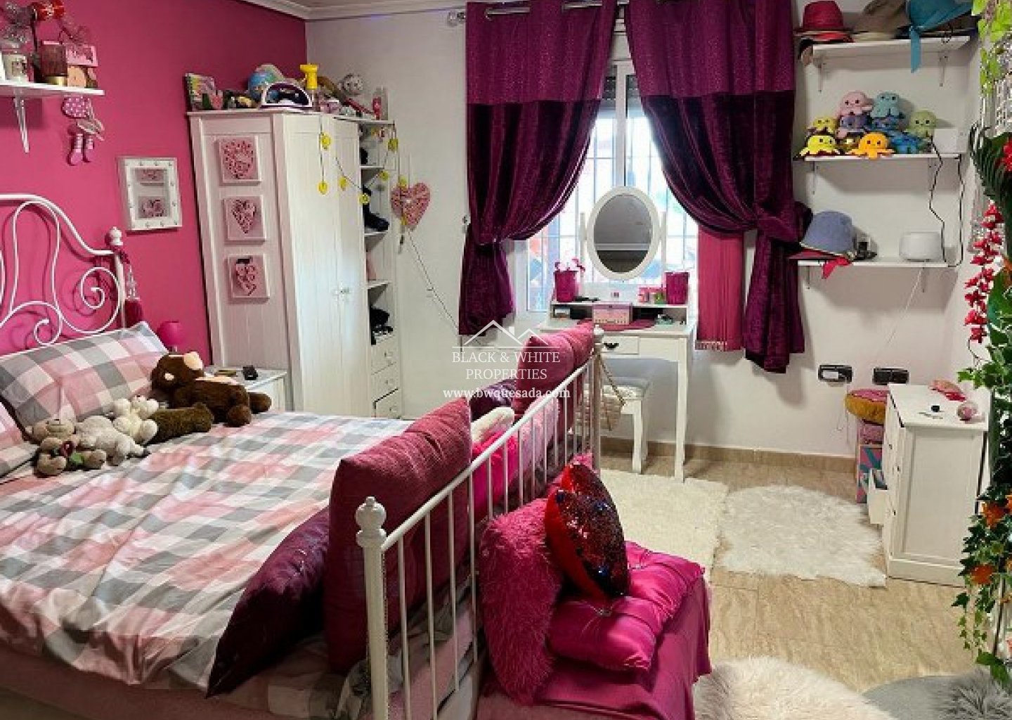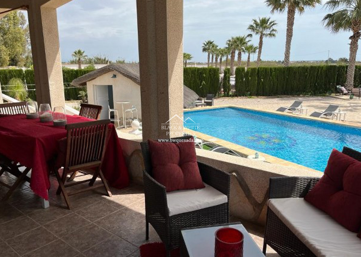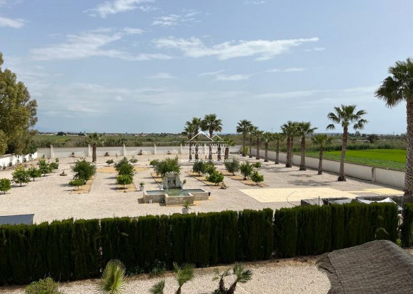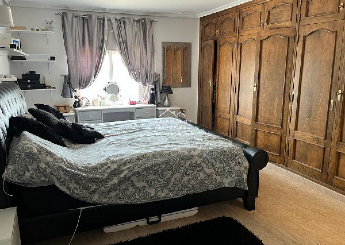 Vaste maison familiale orientée plein sud avec 7 grandes chambres, 3 salles de bain (plus une quatrième salle de bain à l'extérieur), avec un total de 3 salons spacieux (un à l'étage et deux au rez-de-chaussée) et une grande piscine privée. La maison a une taille de construction d'env. 403m² comprenant des terrasses et se trouve à proximité des villes de Catral, Almoradi, Callosa de Segura et Dolores et à seulement 1,8 km de nombreuses commodités telles que des bars, des restaurants et un supermarché. Le logement est impeccablement présenté et est réparti sur deux étages. À partir du rez-de-chaussée, l'entrée se fait par une terrasse couverte surélevée orientée plein sud avec des sièges extérieurs aménagés pour les repas en plein air. En entrant dans un couloir qui mène à un très grand salon confortable avec une cheminée caractéristique qui a également un plafond voûté spectaculaire, il y a également accès à trois très grandes chambres toutes avec placards, le maître a une belle salle de bain attenante. Il y a aussi une salle de bain avec douche et baignoire. L'étage supérieur est complété par une grande cuisine et une salle à manger séparées avec des plans de travail en granit et des appareils de qualité. Des escaliers mènent à de nombreuses autres pièces (également accessibles par une porte d'entrée extérieure, idéale pour une annexe d'invités séparée ou pour la location). Il y a une pièce actuellement utilisée comme dressing, un salon spacieux, un grand salon avec un bar de divertissement, 3 autres grandes chambres, une buanderie et une troisième salle de bain.