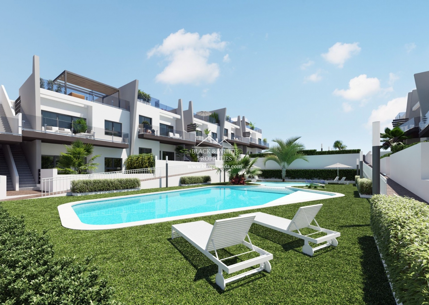 Résidentiel de 108 maisons jumelées, de type bungalow avec 1, 2 et 3 chambres, réparties en rez-de-chaussée avec jardin ou étages supérieurs avec solarium privé. Résidentiel entièrement fermé avec piscines communautaires pour adultes et enfants, espaces verts, aire de jeux pour enfants. Il est situé à San Miguel de Salinas, près des terrains de golf et des centres commerciaux.