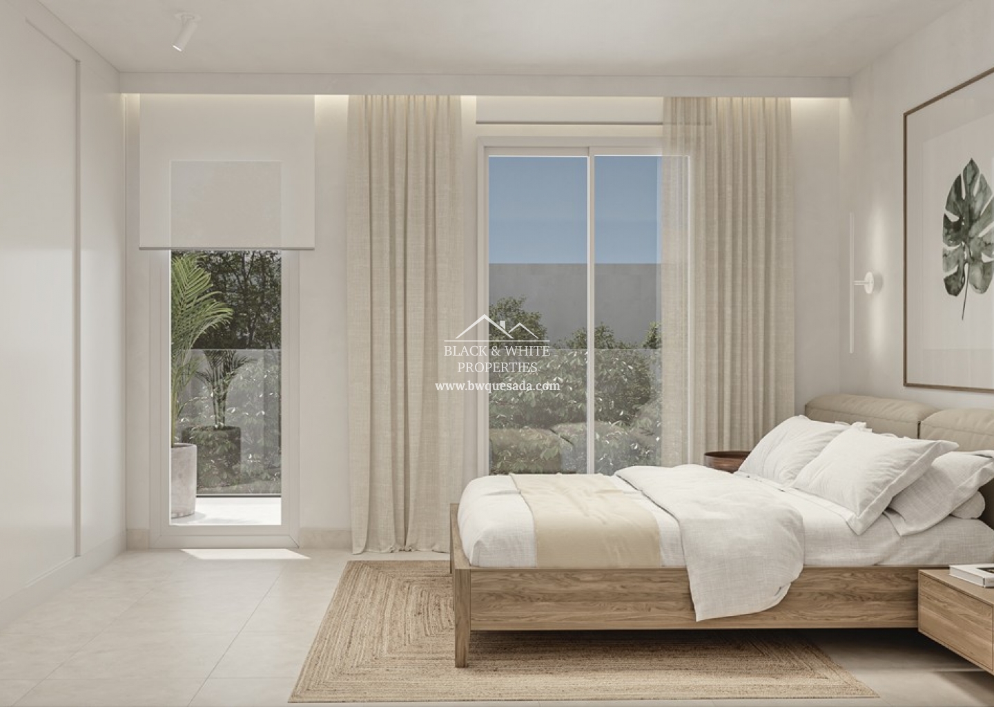 Nouvelle construction de maisons unifamiliales de style méditerranéen. Ils sont construits en blocs de bungalows jumelés, avec une aire de stationnement sur une surface pavée en béton estampé. Il se caractérise par être une maison en trois hauteurs ; premier étage avec chambres, rez-de-chaussée avec cuisine semi-indépendante et sous-sol fini. L'étage supérieur donne accès au solarium, totalement diaphane. La maison a 2 chambres et 2 salles de bains.