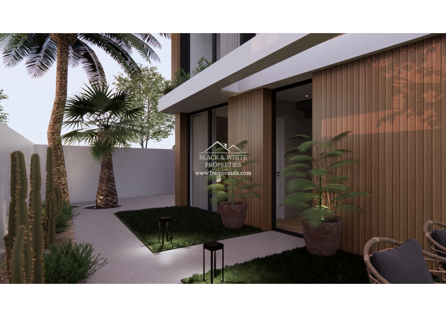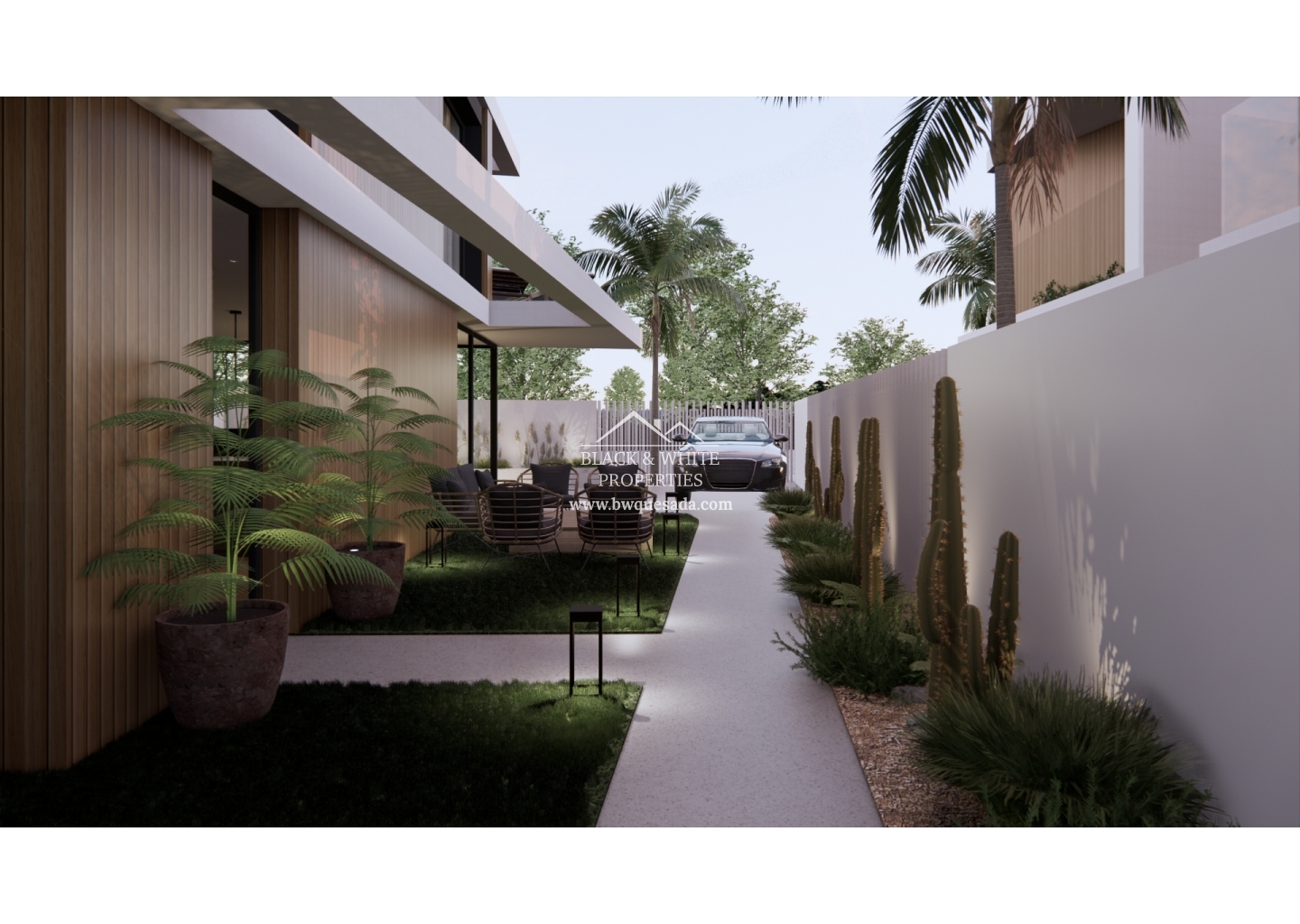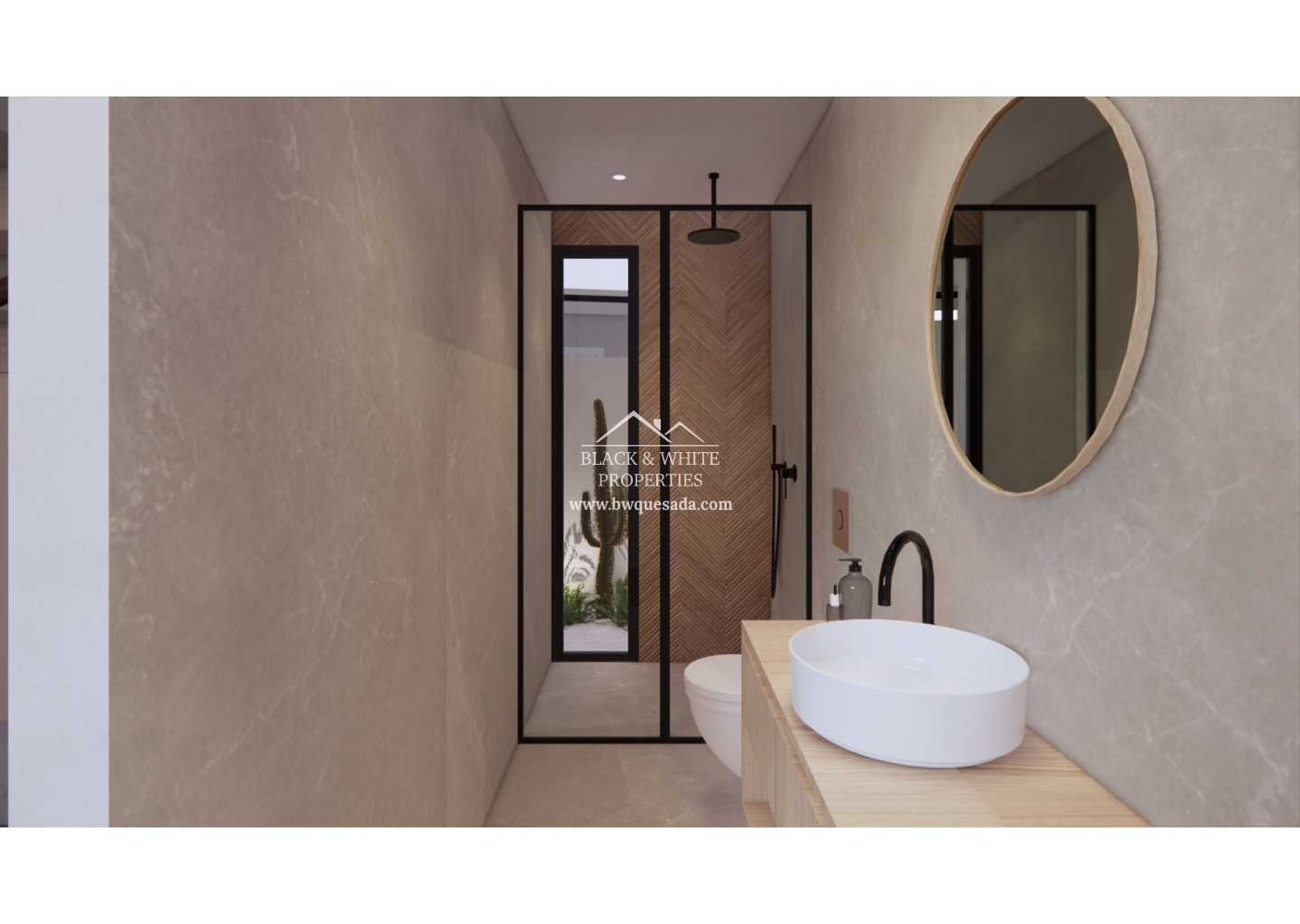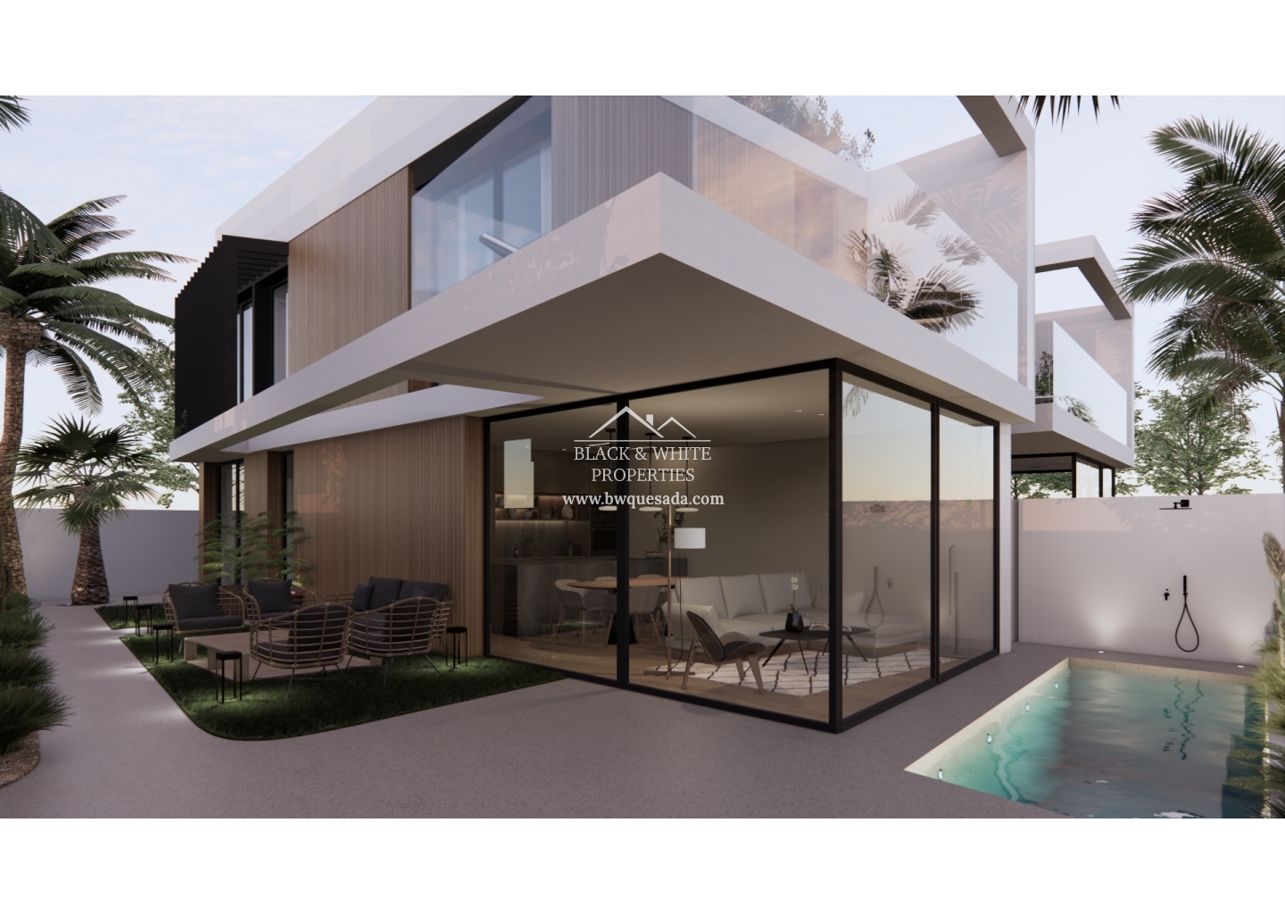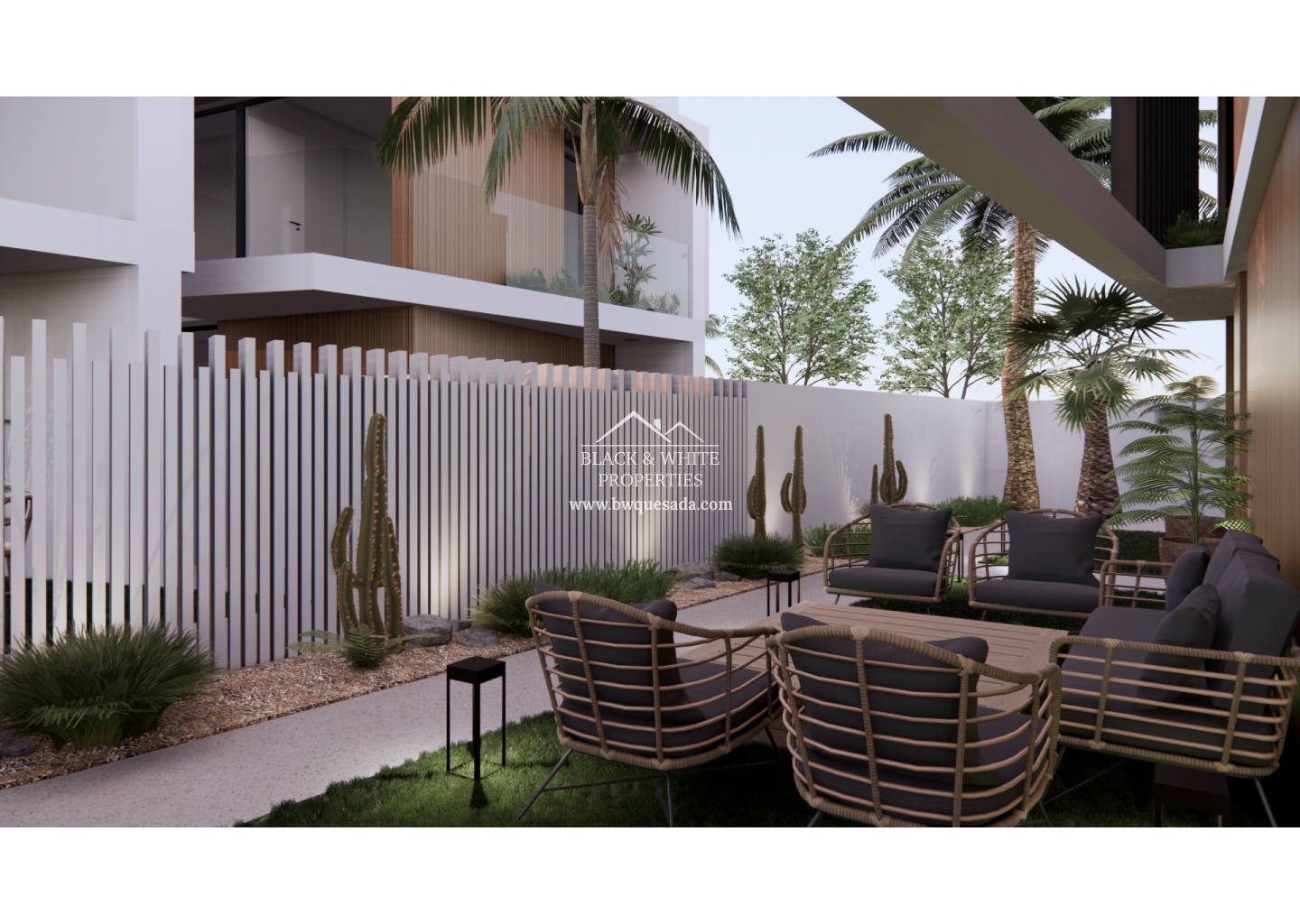 Nous vous présentons cet ensemble exclusif de 4 villas indépendantes situées à Torre de la Horadada, Alicante. Chaque villa possède sa piscine privée et son solarium. Les piscines ont un design unique. Ses jolies finitions en carrelage dans les tons blanc, gris et sable, ainsi que l'éclairage intérieur, créent un cadre aquatique serein et charmant. De plus, chaque piscine est complétée par une douche extérieure. À l'intérieur, les sols en grès cérame rectifié avec une finition imitation bois enrichissent les espaces, tandis que l'effet béton à l'extérieur reflète un design moderne et sophistiqué. De plus, toutes les salles de bains sont dotées de carrelage de la célèbre marque PORCELANOSA. D'autre part, du gazon artificiel a été incorporé dans les parcelles et les solariums, et des barbecues ont été préinstallés dans ces derniers pour les moments de détente en plein air. Les prix démarrent à partir de 580 000 € et la livraison aura lieu en décembre 2024.
