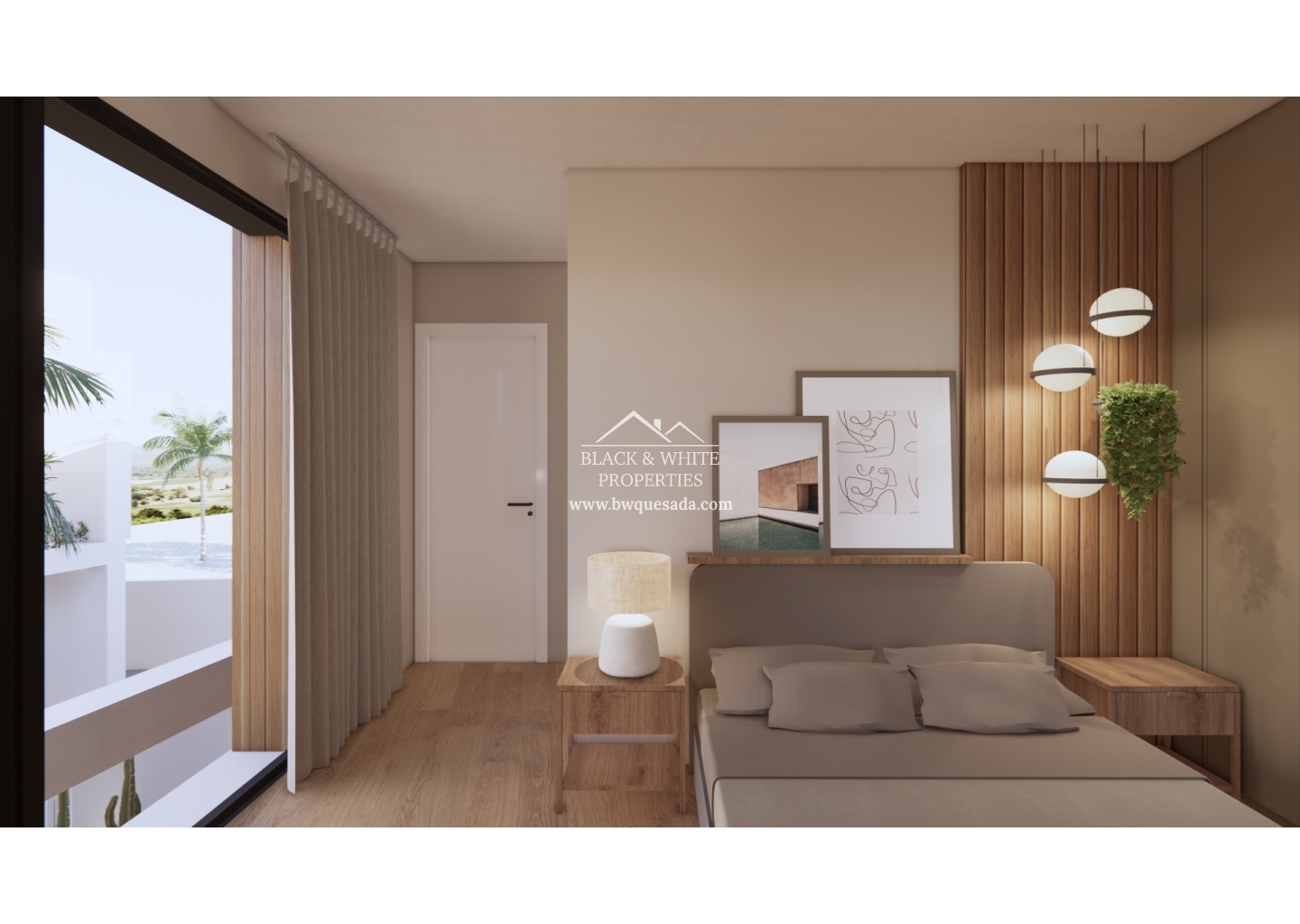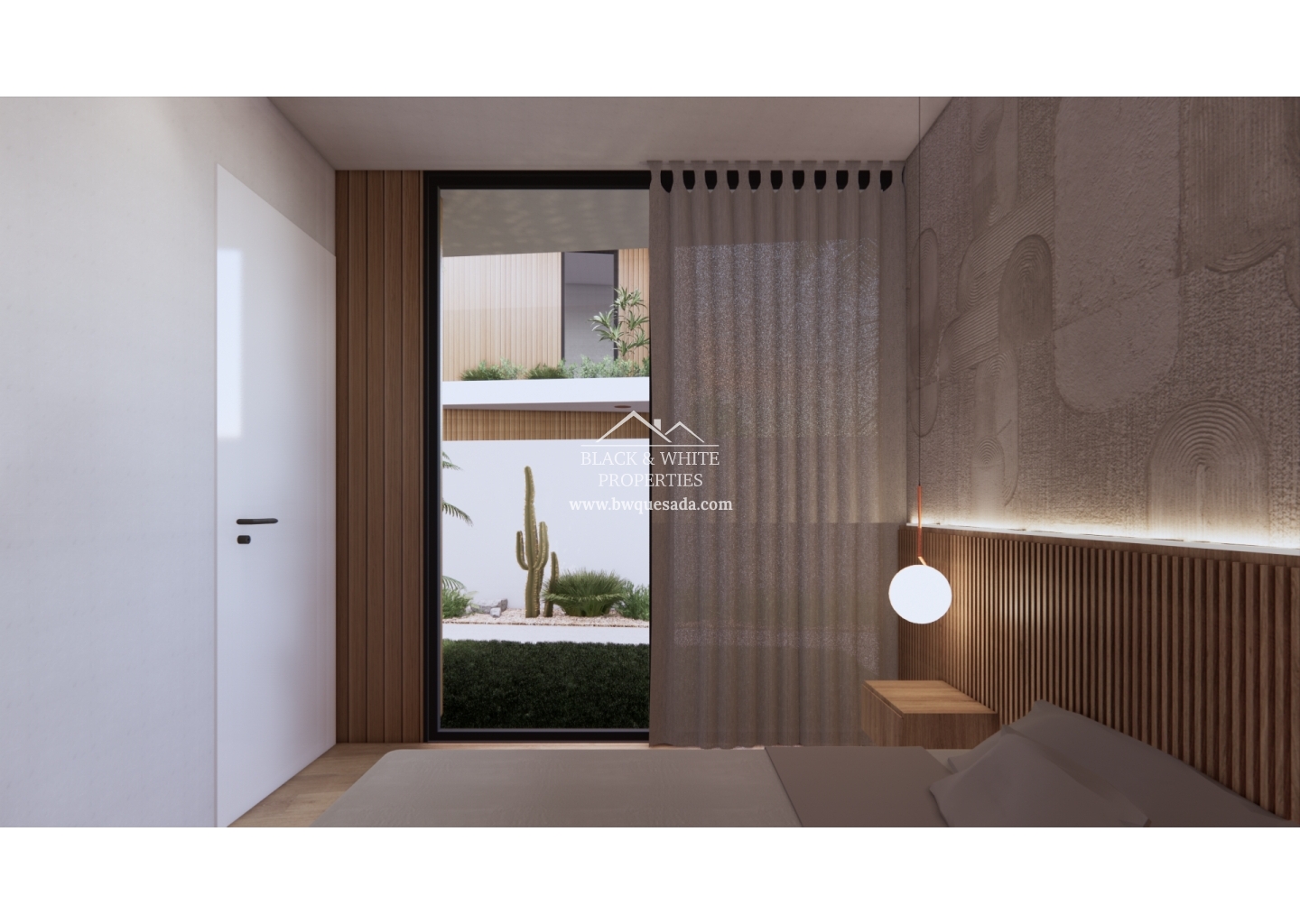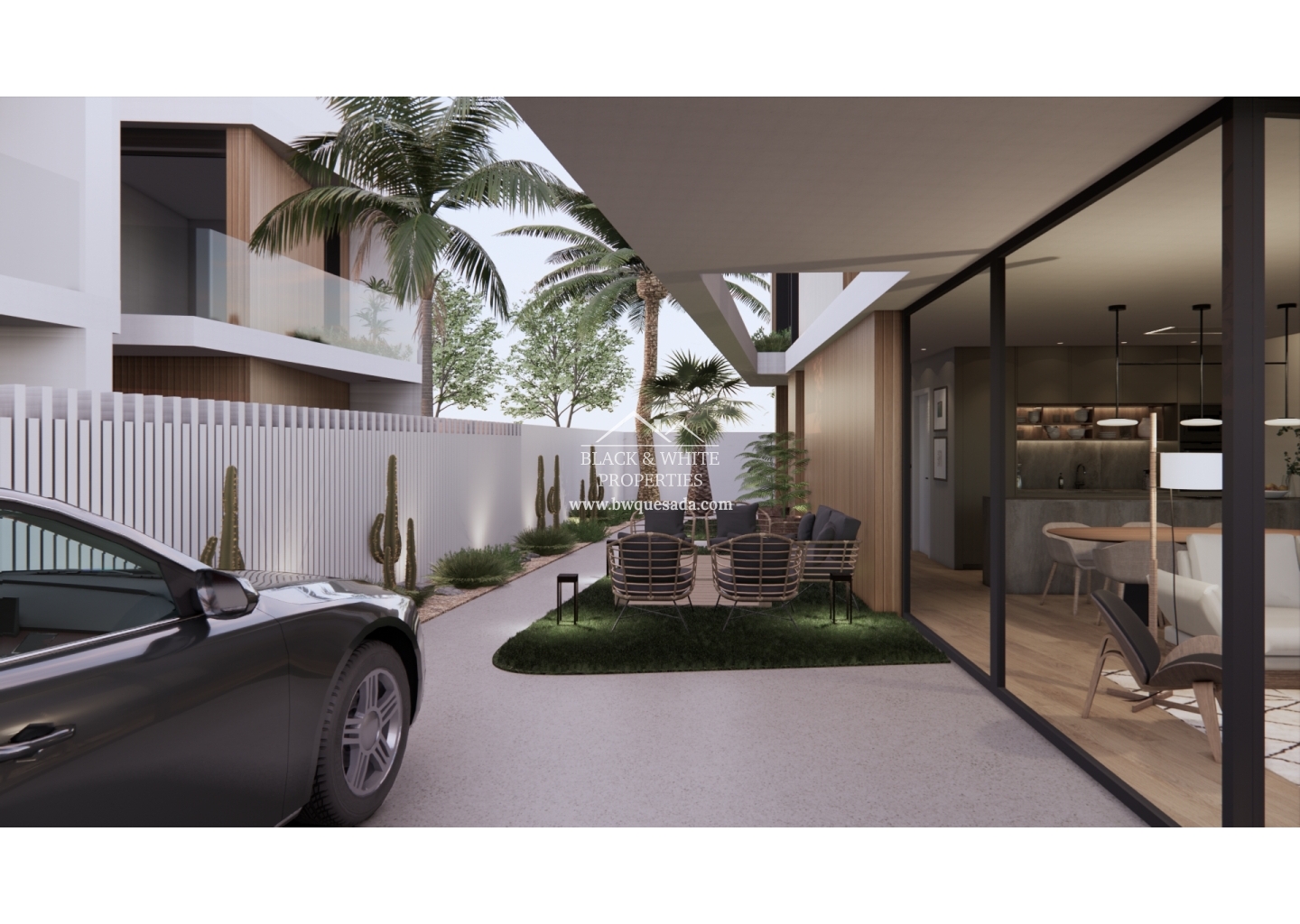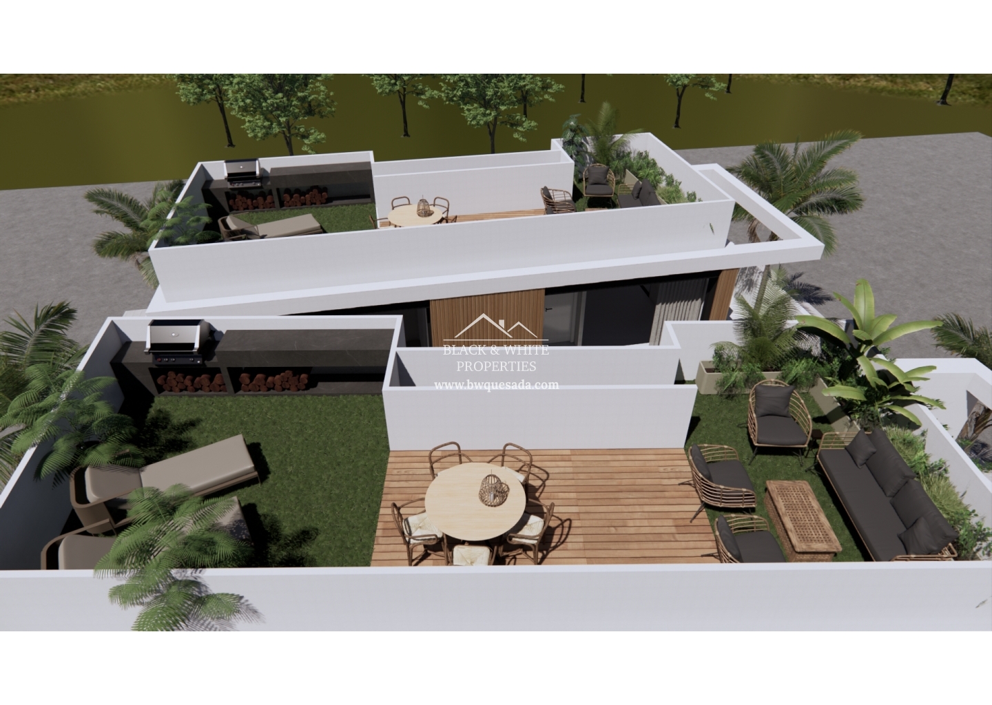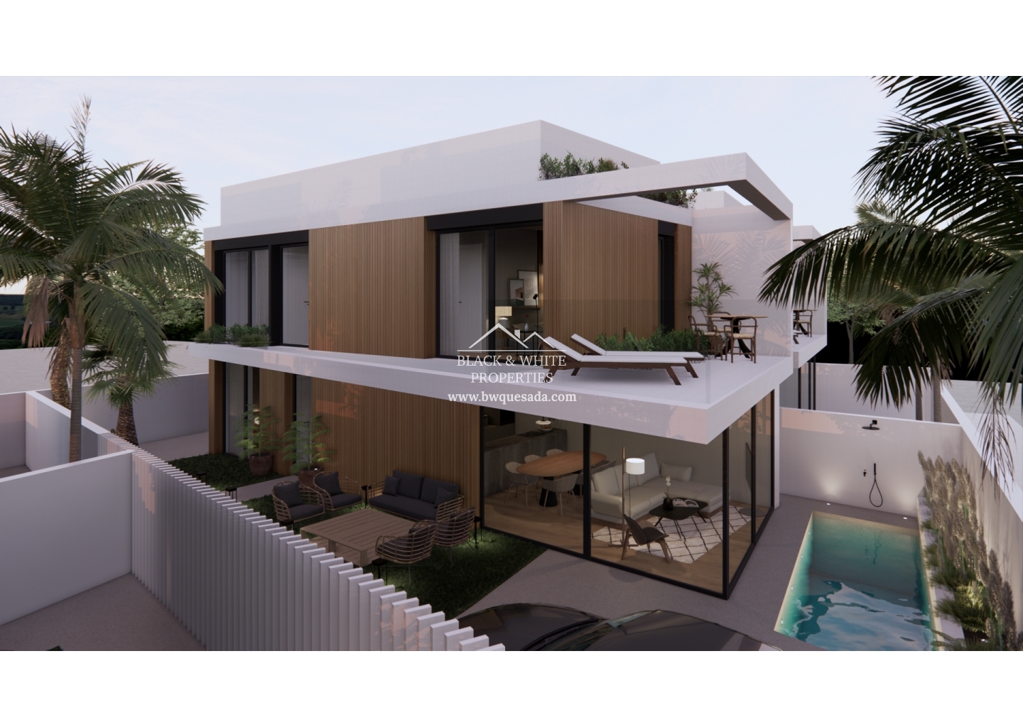 Nous vous présentons cet ensemble exclusif de 4 villas indépendantes situées à Torre de la Horadada, Alicante. Chaque villa possède sa piscine privée et son solarium. Les piscines ont un design unique. Ses jolies finitions en carrelage dans les tons blanc, gris et sable, ainsi que l'éclairage intérieur, créent un cadre aquatique serein et charmant. De plus, chaque piscine est complétée par une douche extérieure. À l'intérieur, les sols en grès cérame rectifié avec une finition imitation bois enrichissent les espaces, tandis que l'effet béton à l'extérieur reflète un design moderne et sophistiqué. De plus, toutes les salles de bains sont dotées de carrelage de la célèbre marque PORCELANOSA. D'autre part, du gazon artificiel a été incorporé dans les parcelles et les solariums, et des barbecues ont été préinstallés dans ces derniers pour les moments de détente en plein air. Les prix démarrent à partir de 580 000 € et la livraison aura lieu en décembre 2024.