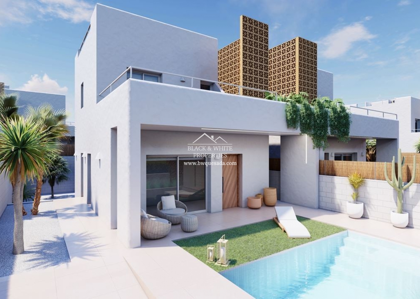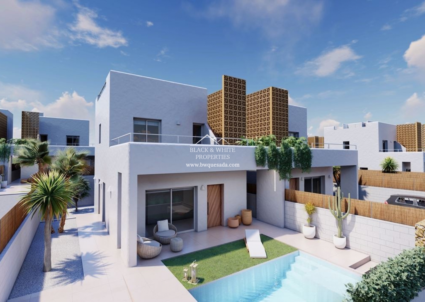 Nous sommes heureux de vous présenter cette magnifique promotion qui est un projet composé de 17 villas indépendantes à Pilar de la Horadada. Ces villas disposent de 3 chambres, d'une piscine privée et d'un toit-terrasse. De plus, ils disposent de grandes parcelles entre 203 m2 et 410 m2. Concernant la distribution de la maison, au rez-de-chaussée nous trouvons un grand séjour avec une cuisine américaine, une grande chambre avec placard intégré et une salle de bain. Depuis le salon et la chambre, nous pouvons accéder à différentes terrasses et au jardin. Au premier étage, il y a deux chambres, toutes deux avec placards intégrés et salles de bains privatives. Depuis l'une des chambres et le hall, vous accédez à un joli balcon avec beaucoup d'espace. Dans les environs, nous pouvons trouver des restaurants, des magasins, des supermarchés et des centres sportifs.