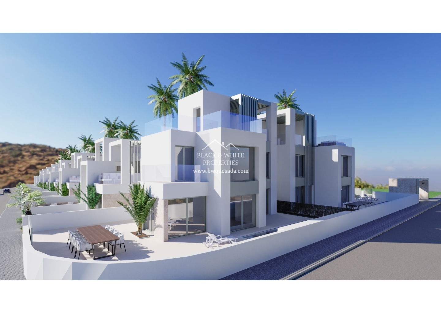 Nous vous présentons ce nouveau développement situé à Ciudad Quesada, qui propose 30 villas modernes exclusives situées à quelques minutes à pied de toutes les installations de loisirs. Ces impressionnantes villas sont réparties sur deux étages avec une terrasse privée et un solarium. Le rez-de-chaussée comprend un salon ouvert et lumineux avec une cuisine et une salle à manger modernes, ainsi qu'une grande chambre avec placards intégrés et une salle de bains. A l'étage, vous disposez de deux chambres avec placards intégrés et salles de bains privatives. La chambre principale possède un balcon privé. Construites sur des parcelles allant de 167 à 183 m2, ces villas sont équipées de prestations de pointe, notamment volets électriques, système d'eau chaude aérothermique, ensemble électroménager complet, espace jacuzzi pré-installé, terrasse, climatisation gainable en option. pour ajouter le système Airzone, le pack d'éclairage et la piscine privée.