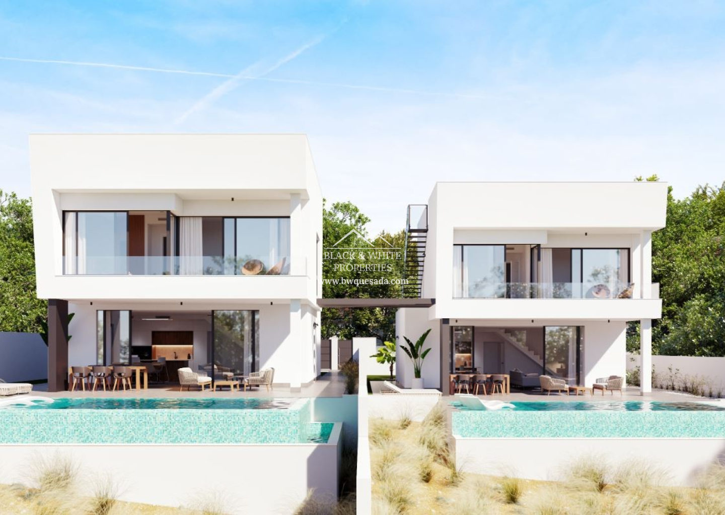 Nous avons le plaisir de vous présenter deux villas de luxe de 180 m² avec une piscine à débordement de 40 m² et un espace jacuzzi, sur un grand terrain de 700 m² chacune, avec terrasses offrant une vue sur la mer et un jardin privé. Les propriétés disposent de 4 chambres et 3 salles de bains complètes. Conçues sur deux niveaux dans un style contemporain avec un concept d’espace ouvert, elles comprennent une cuisine entièrement équipée et un salon-salle à manger. Les villas sont situées à Pinar de Campoverde (Alicante), entourées de services, d’installations sportives, à proximité de plusieurs terrains de golf comme Las Colinas et Lo Romero Golf, et à seulement 10 minutes de la Mar Menor et des plages méditerranéennes.
