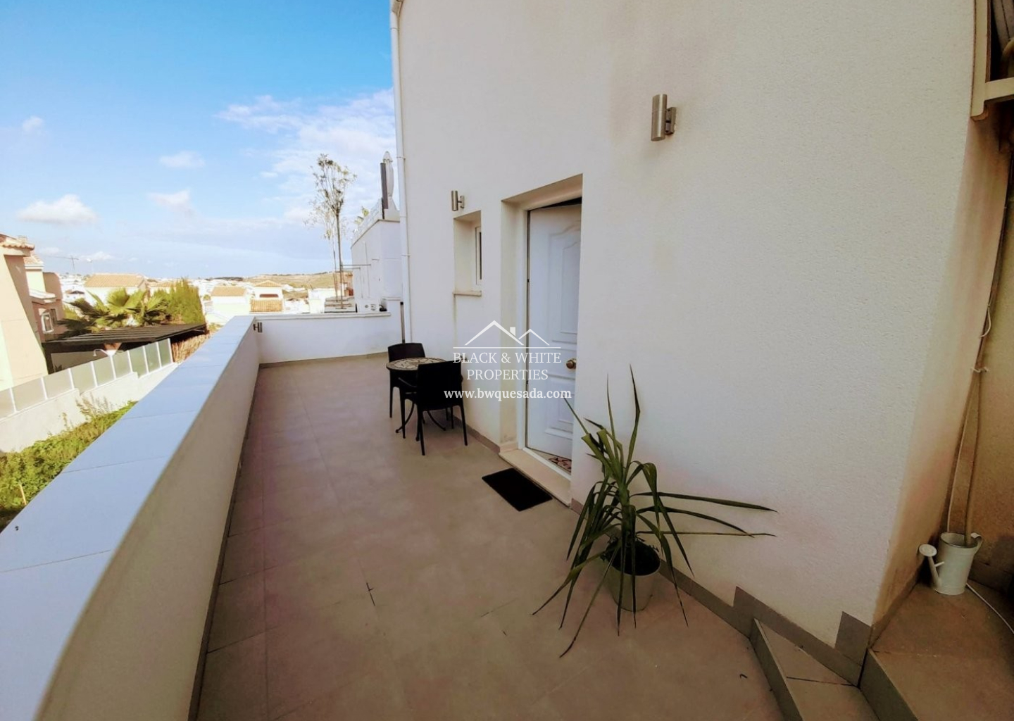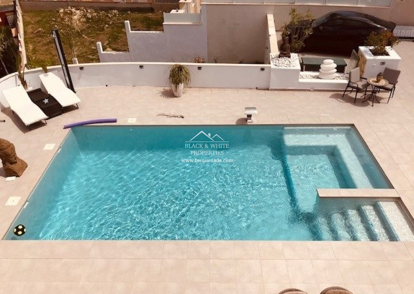 Cette magnifique villa neuve à Ciudad Quesada est construite sur un terrain de 1000 m² et comprend 3 bâtiments. Le bâtiment principal est une maison avec un salon/salle à manger de 70 m², une cuisine ouverte avec îlot, 2 chambres spacieuses et 2 salles de bains attenantes, ainsi qu'une terrasse sur le toit de 120 m². À l'arrière, il y a un appartement indépendant de 60 m² avec un salon, une cuisine américaine, 2 chambres et 1 salle de bain. Dans un bâtiment séparé, il y a un studio avec 1 chambre et 1 salle de bain. Dans un autre bâtiment séparé, il y a un espace multifonctionnel avec 1 chambre et 1 salle de bain, actuellement utilisé comme bureau, mais pouvant être transformé en espace résidentiel ou de stockage. Le grand jardin est partiellement carrelé avec un portail automatique, une piscine privée et un grand parking. Depuis le toit, la maison offre une vue sur la vallée et la mer lointaine. La maison est équipée de caméras de surveillance.