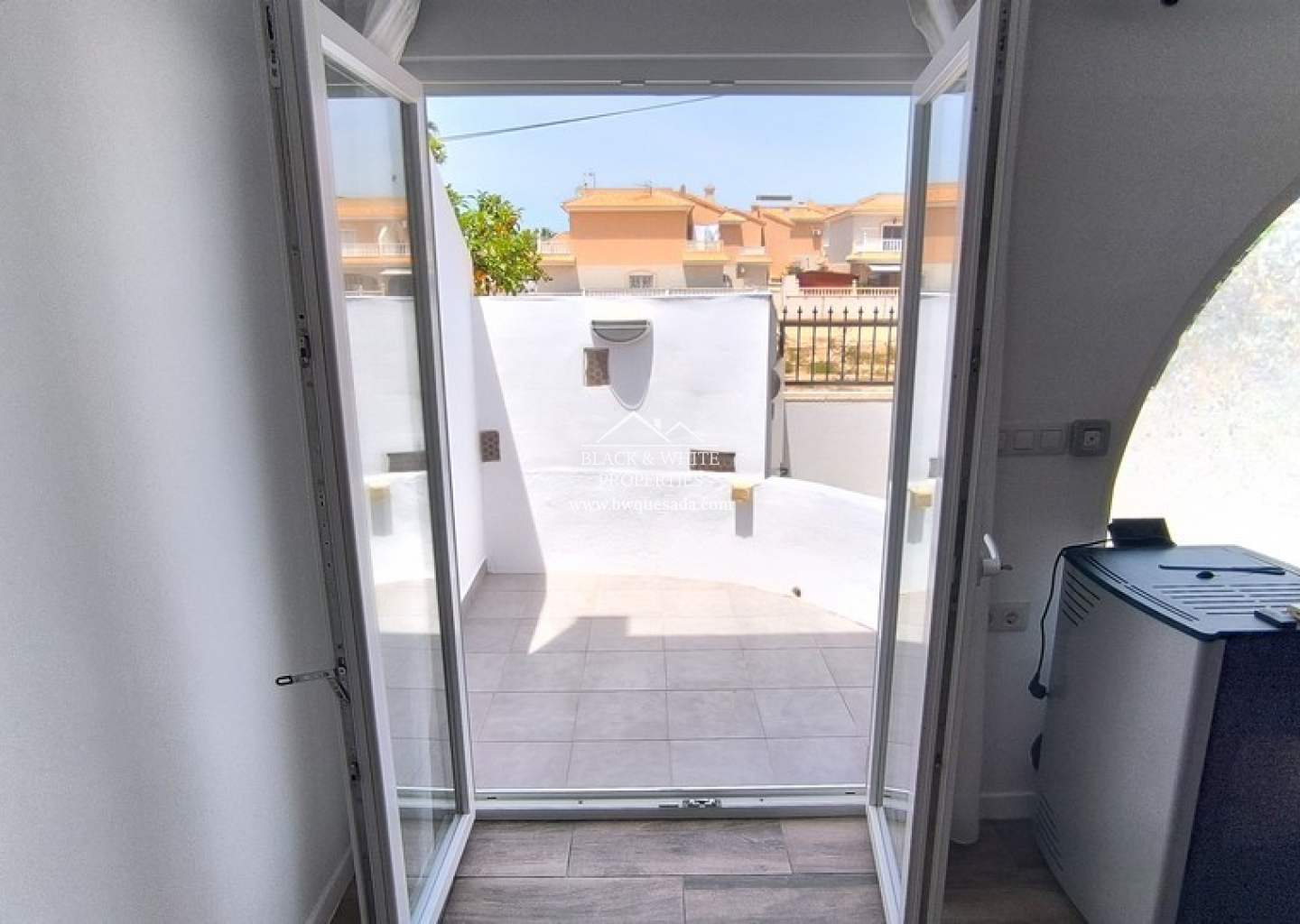La chambre d'amis est idéale pour les visiteurs, tandis que la chambre principale, plus spacieuse, offre un accès direct au jardin arrière et à la terrasse sur le toit par un escalier extérieur. La chambre principale et le salon sont climatisés. Toutes les fenêtres et portes sont équipées de double vitrage de dernière génération pour un confort optimal toute l'année.