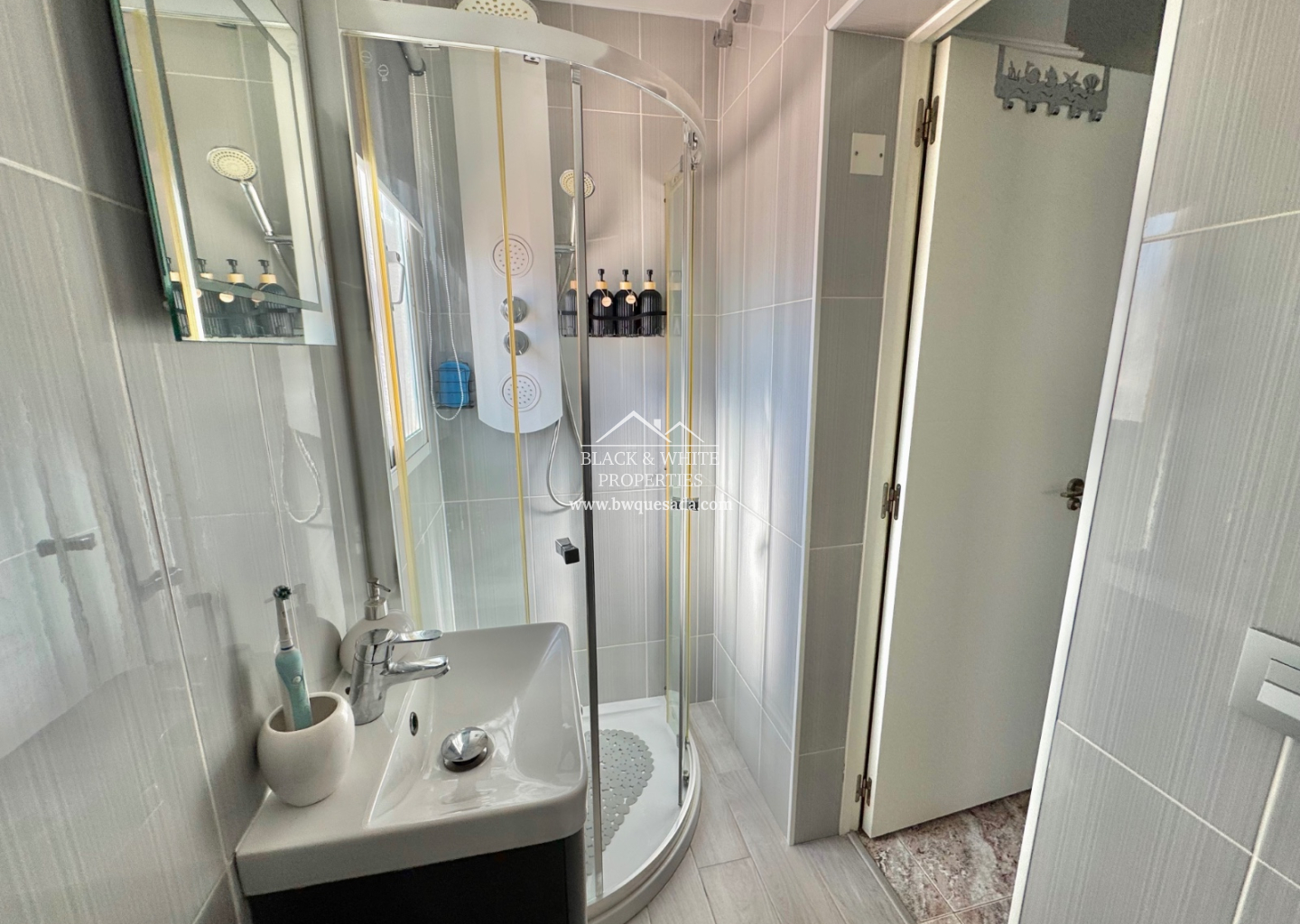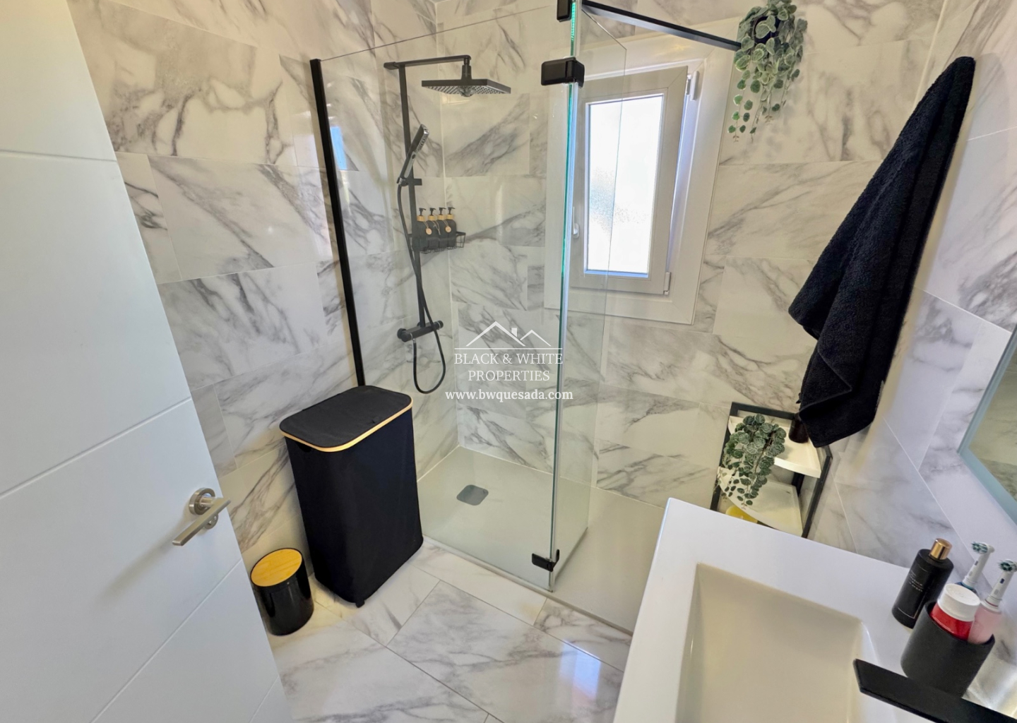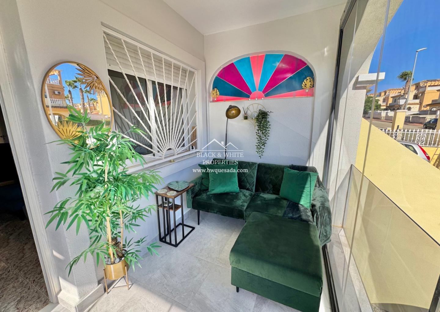 Au rez-de-chaussée, vous trouverez un séjour lumineux avec salle à manger, une cuisine fonctionnelle avec accès direct au patio arrière, une salle d’eau avec douche, ainsi qu’une chambre, parfaite pour les invités ou pour éviter les escaliers. À l’étage, deux chambres disposent chacune de leur propre terrasse, ainsi qu’une salle de bains complète.