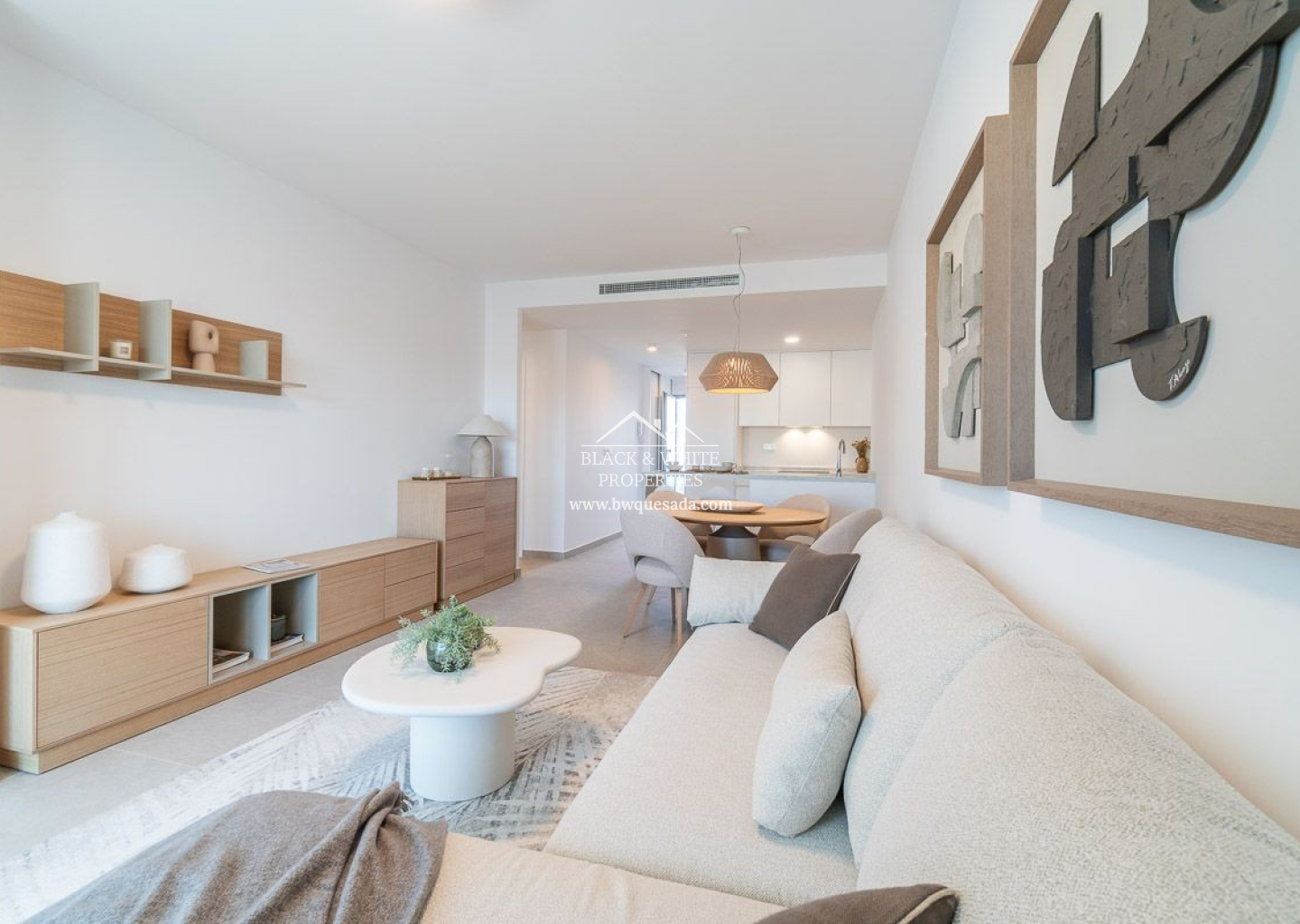 Découvrez ces appartements neufs spectaculaires dans le quartier prisé de Playa Flamenca, Orihuela Costa. Conçu pour ceux qui recherchent qualité et confort à un prix abordable, ce complexe propose des options adaptées à tous vos besoins. Il y a actuellement 2 blocs à vendre. Le bloc 2, jusqu’à 120 m², avec 4 chambres, 3 salles de bains, garage inclus et terrasse jusqu’à 79 m². Le bloc 3, jusqu’à 148 m², avec 4 chambres, 3 salles de bains, garage inclus et terrasse jusqu’à 85 m². Chaque appartement se distingue par sa luminosité, son espace et ses finitions modernes, offrant des espaces idéaux pour profiter d’une vie confortable et détendue. Emplacement privilégié, excellent design et prix attractif font de ces logements le choix parfait à Playa Flamenca. De plus, cette promotion se trouve à seulement 500 mètres de la mer et certains logements bénéficient d’une vue sur la mer.