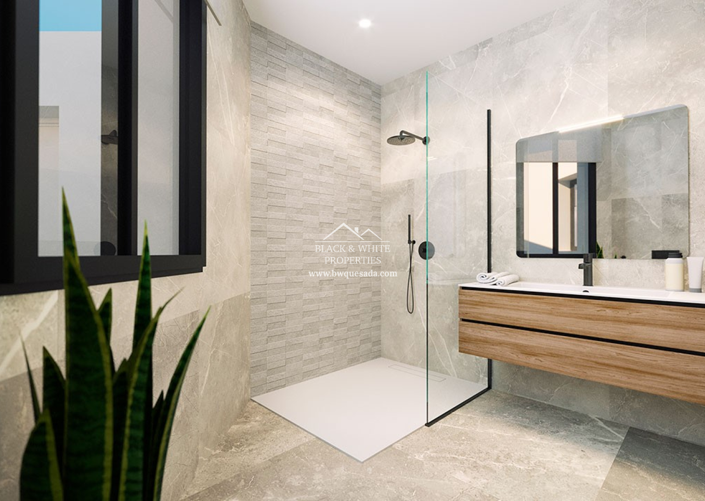 - Salles de bain entièrement équipées avec sanitaires, meubles et parois de douche.