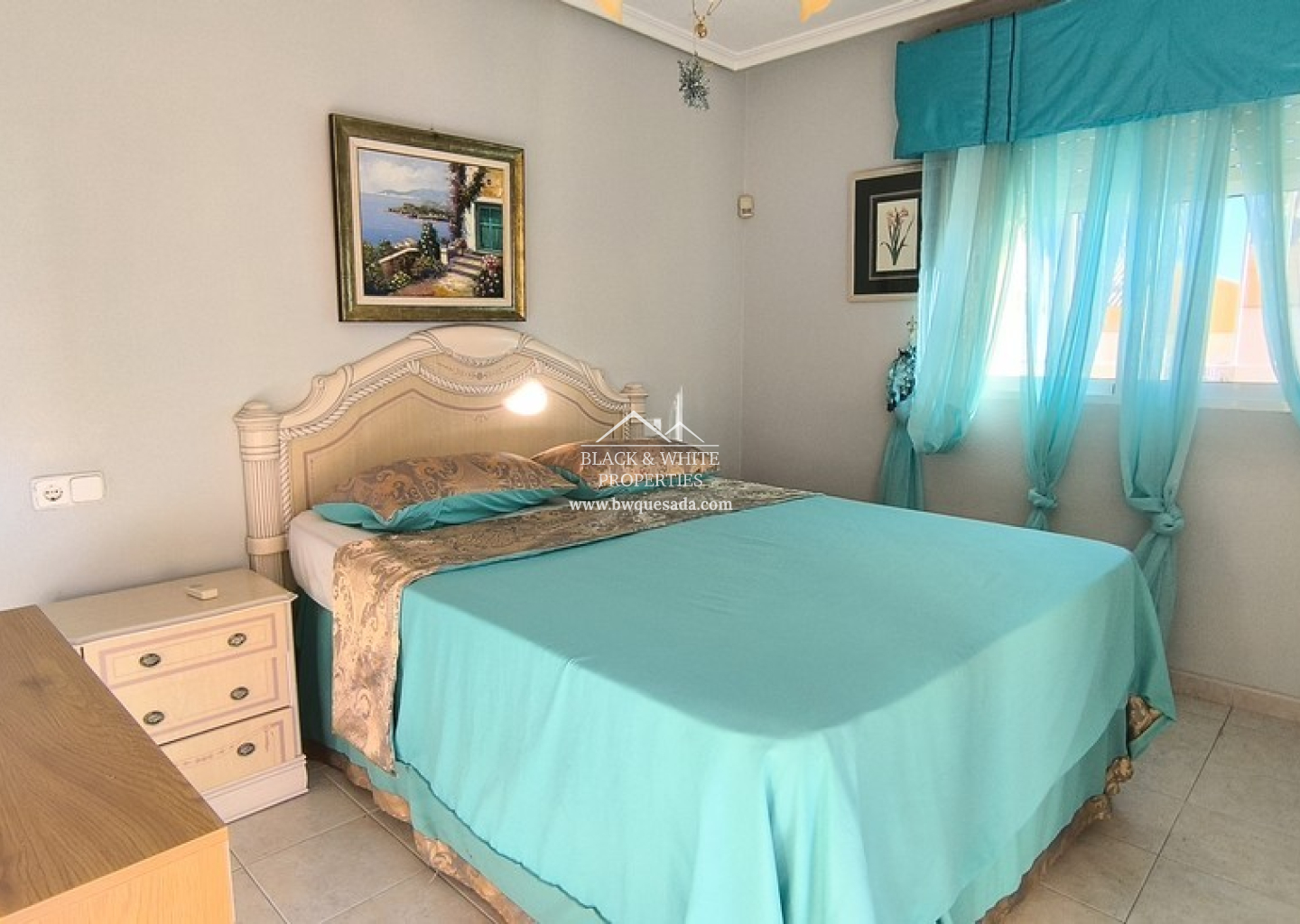 Le terrain entièrement carrelé est idéal pour un entretien minimal. Il dispose d’un parking privé et d’une charmante pergola, parfaite pour les repas en plein air ou pour se détendre à l’ombre.