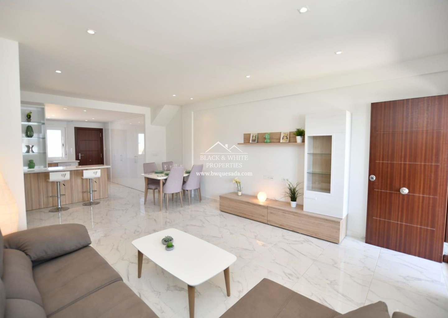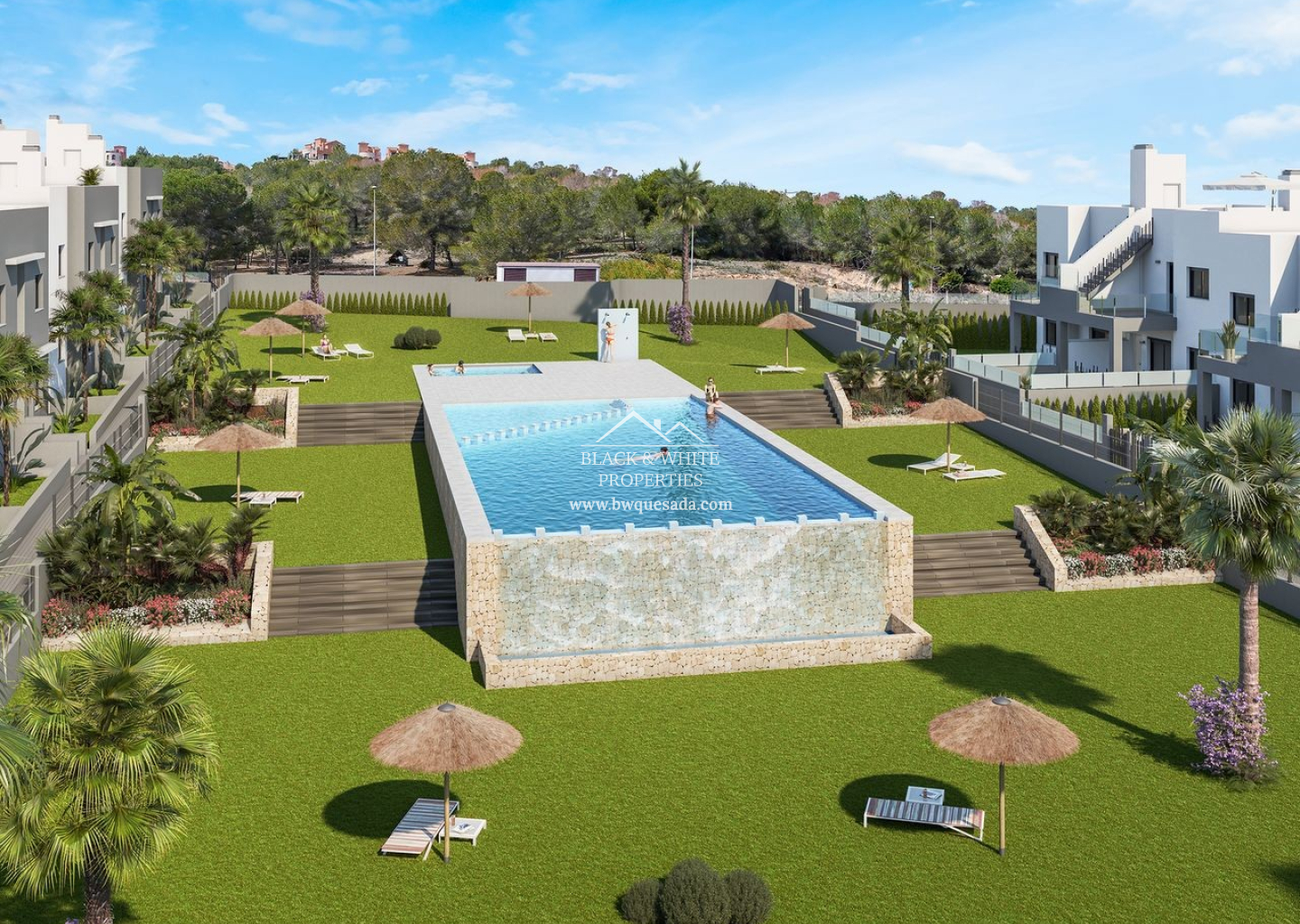 Nous vous présentons cette nouvelle promotion concernant un projet de construction neuve situé à San Miguel de Salinas. Elle se compose de 68 bungalows modernes, où vous pourrez choisir entre des logements au rez-de-chaussée avec jardin privé ou des penthouses avec de vastes terrasses ensoleillées sur le toit. Tous les appartements disposent d’une cuisine ouverte moderne et d’un salon, de deux grandes chambres avec armoires encastrées et de deux salles de bains, dont une attenante à la chambre principale. Pour ceux qui ont besoin de plus d’espace, il existe également la possibilité de créer une troisième chambre. Les appartements du rez-de-chaussée offrent deux jardins privés, un à l’avant et un à l’arrière, idéaux pour profiter du soleil toute la journée. Les penthouses disposent d’un agréable balcon d’environ 13 m², d’où un escalier mène à une grande terrasse privée sur le toit. Il y a amplement d’espace pour des meubles de terrasse, des transats, un coin barbecue et, bien sûr, une vue magnifique sur les environs. Les espaces communs comprennent :