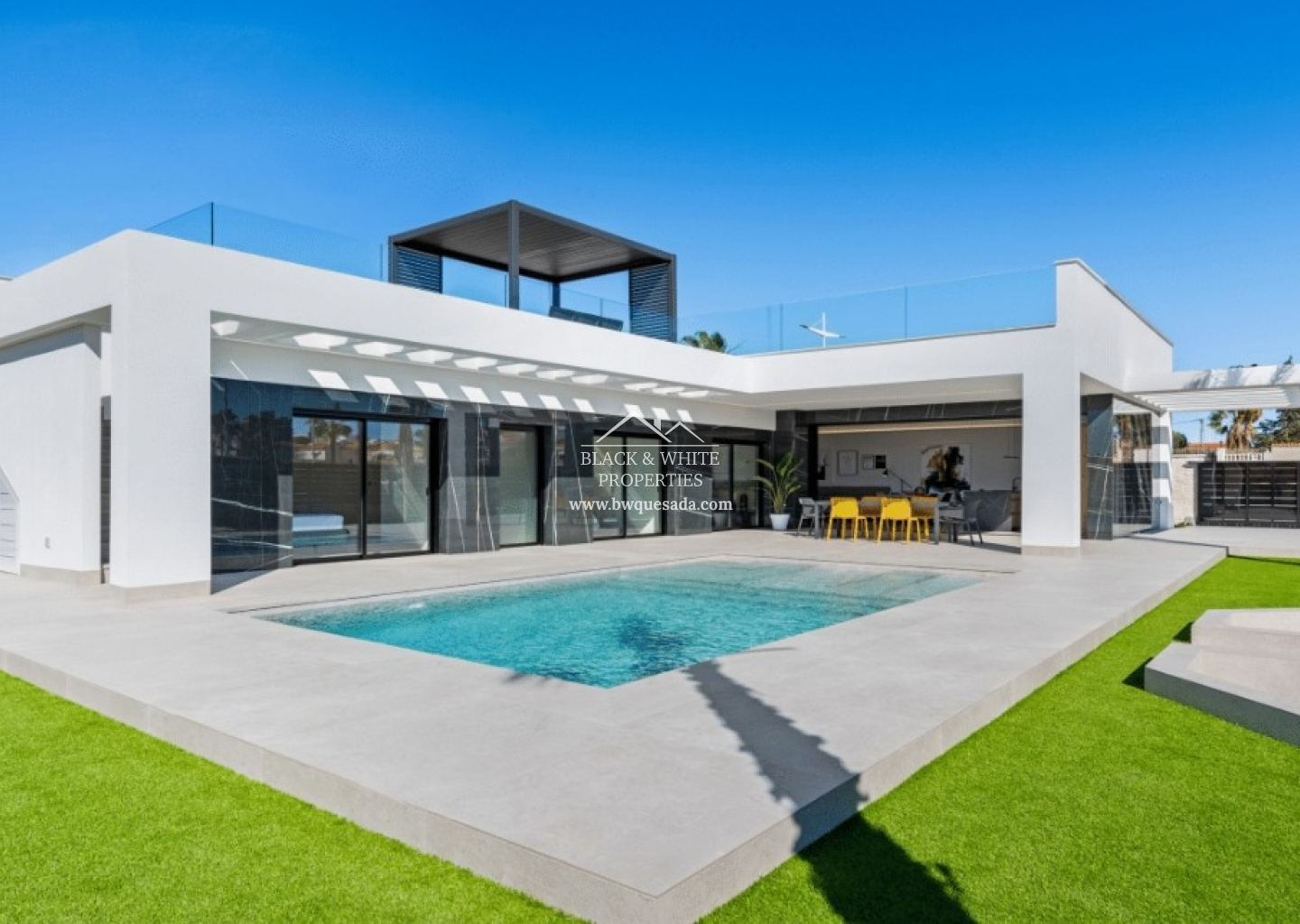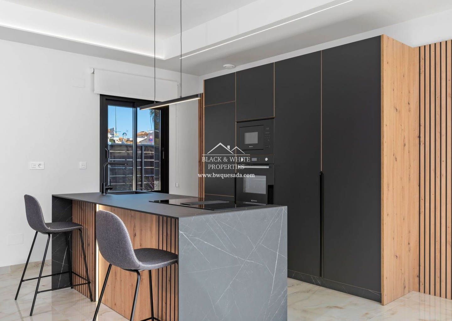 Nouvelle promotion exclusive composée de 11 villas individuelles. Il existe l’option de trois chambres et deux salles de bain ou de quatre chambres et trois salles de bain, offrant le meilleur design tant à l’extérieur qu’à l’intérieur. Chaque logement est situé sur une grande parcelle indépendante d’environ 500 m², qui inclut un grand salon-cuisine orienté vers la terrasse, une piscine privée, un solarium, une zone de stationnement et des espaces jardin. La même ligne de typologie, de matériaux et de qualités que dans la promotion précédente (RÉFÉRENCE BW-1985) est maintenue. Parmi les nouveautés les plus remarquables se trouve la nouvelle cuisine, désormais dotée d’une plus grande capacité de rangement et d’un espace petit-déjeuner pratique facilitant son usage quotidien. De même, le design du lambris du salon et de la chambre principale a été renouvelé, combinant le bois avec des matériaux à effet marbre pour apporter un style plus élégant et contemporain.
