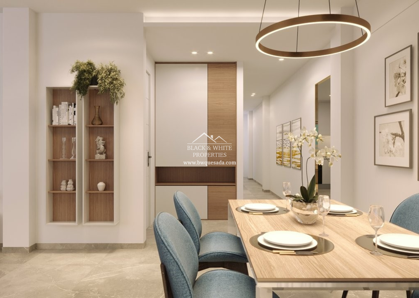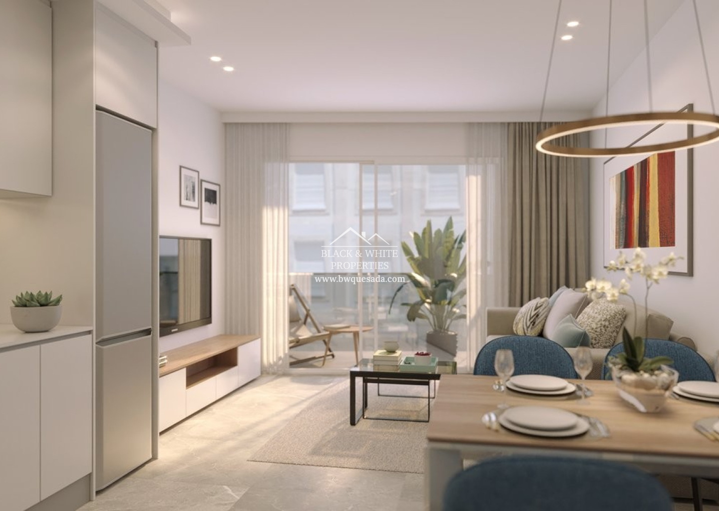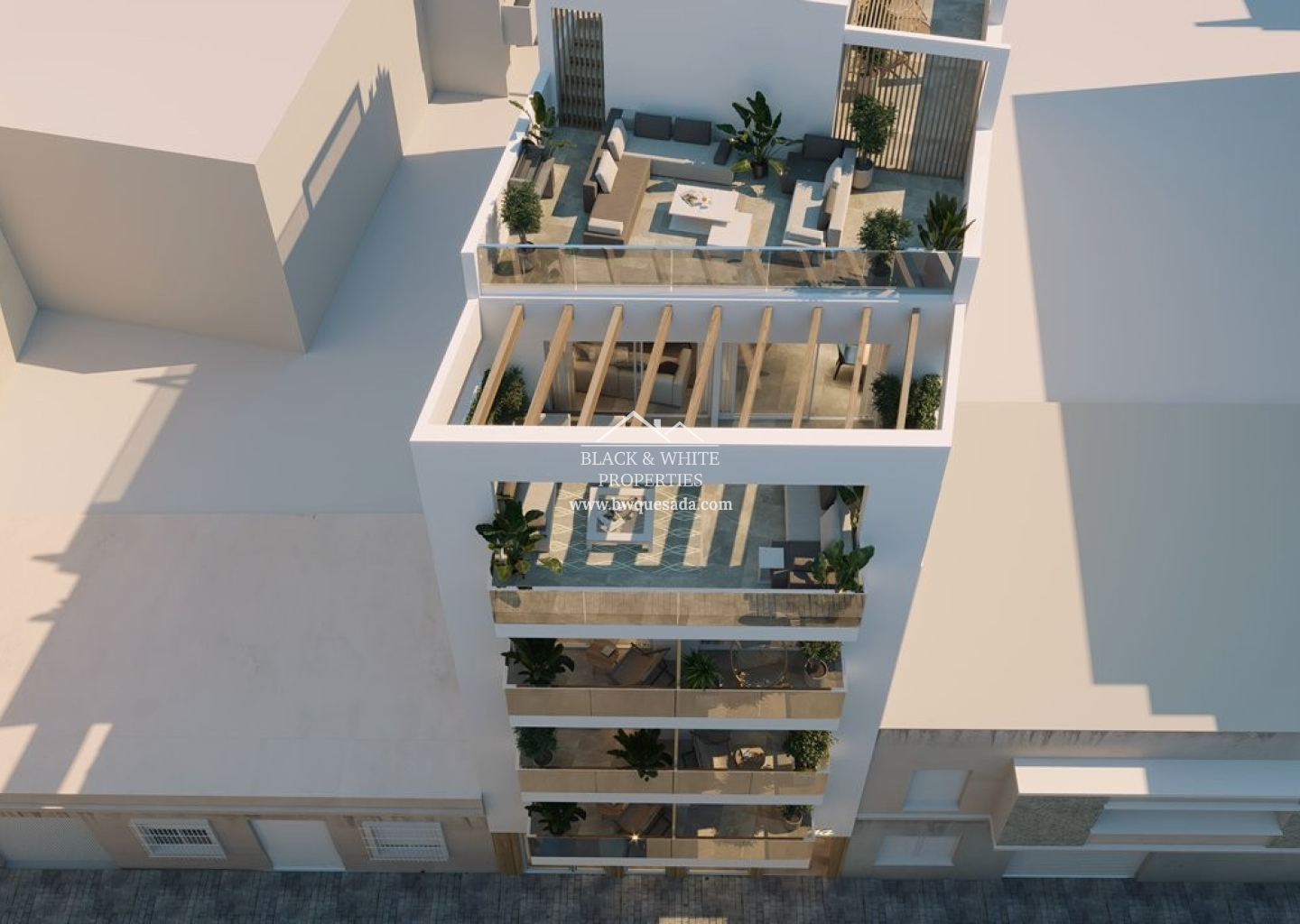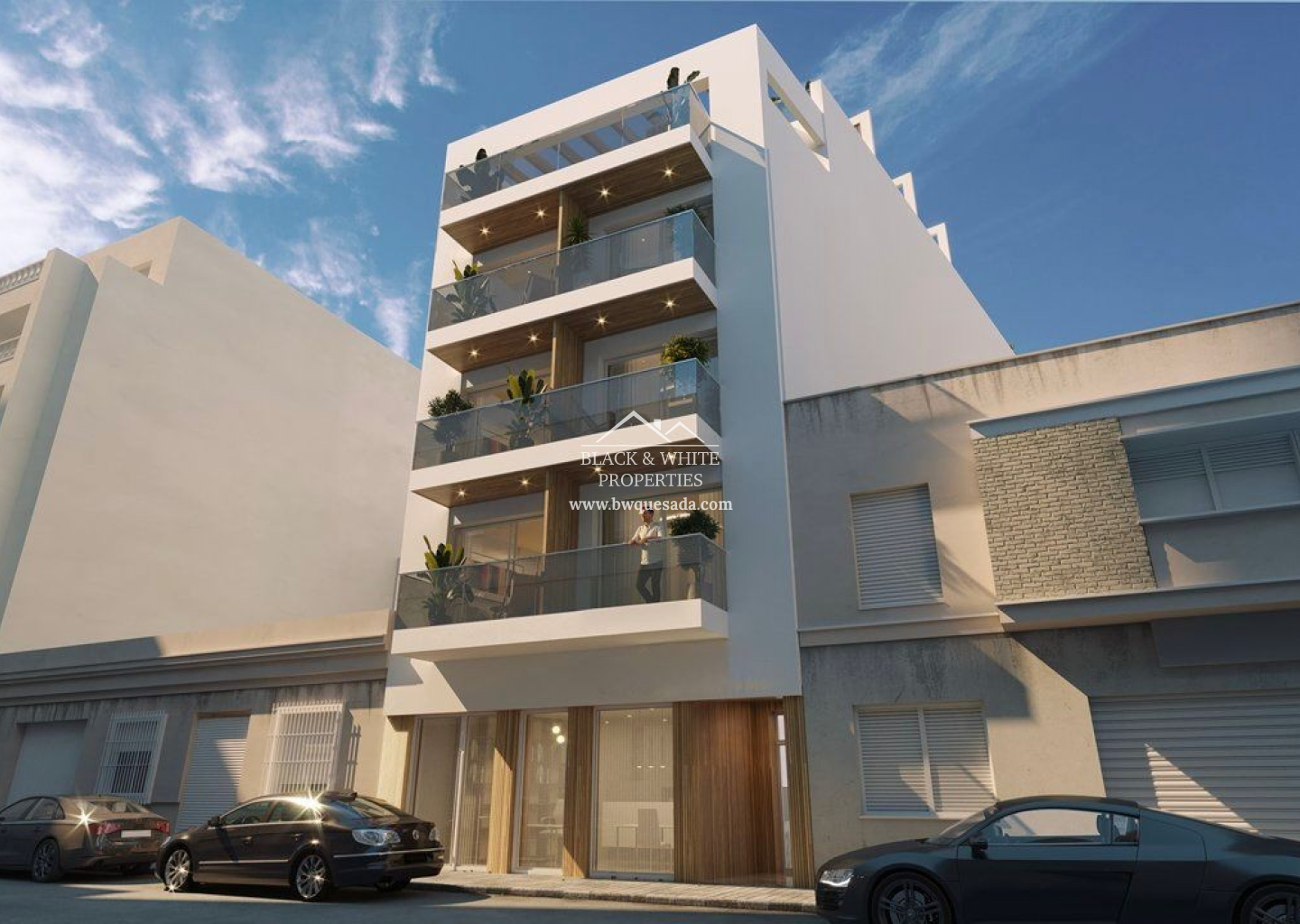 Promotion exclusive de sept appartements modernes de 2 ou 3 chambres et de deux locaux commerciaux au rez-de-chaussée, située en plein centre de Torrevieja, à quelques pas de la Playa del Cura. Cet immeuble au design contemporain combine élégance, fonctionnalité et emplacement privilégié. Profitez de services communs toute l’année, tels que piscine, jacuzzi et solarium sur le toit avec zones chill-out et espaces verts.