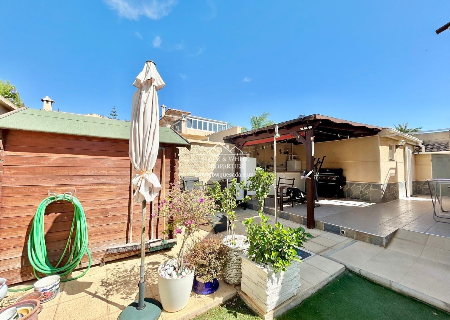 Découvrez cette magnifique villa individuelle située au cœur d’El Chaparral, l’un des quartiers les plus agréables et multiculturels de Torrevieja. Ici, vous profiterez d’un environnement calme et confortable, parfait à la fois pour une résidence principale ou une maison secondaire. La maison principale dispose de deux grandes chambres, d’une spacieuse salle de bain familiale et d’un salon chaleureux avec cuisine ouverte, conçue pour profiter au maximum de la lumière naturelle et créer une ambiance accueillante et fonctionnelle. À l’extérieur, vous trouverez une spectaculaire piscine chauffée à l’eau salée, idéale pour en profiter toute l’année. Le grand jardin latéral, avec des arbres fruitiers, apporte une touche méditerranéenne charmante et offre un espace parfait pour la détente. À l’arrière de la maison, une cuisine extérieure entièrement équipée avec barbecue, réfrigérateur, congélateurs et beaucoup d’espace de rangement est prévue pour les réunions et les célébrations en plein air. À côté, une charmante maison d’invités avec salle de bain privée offre un espace indépendant.