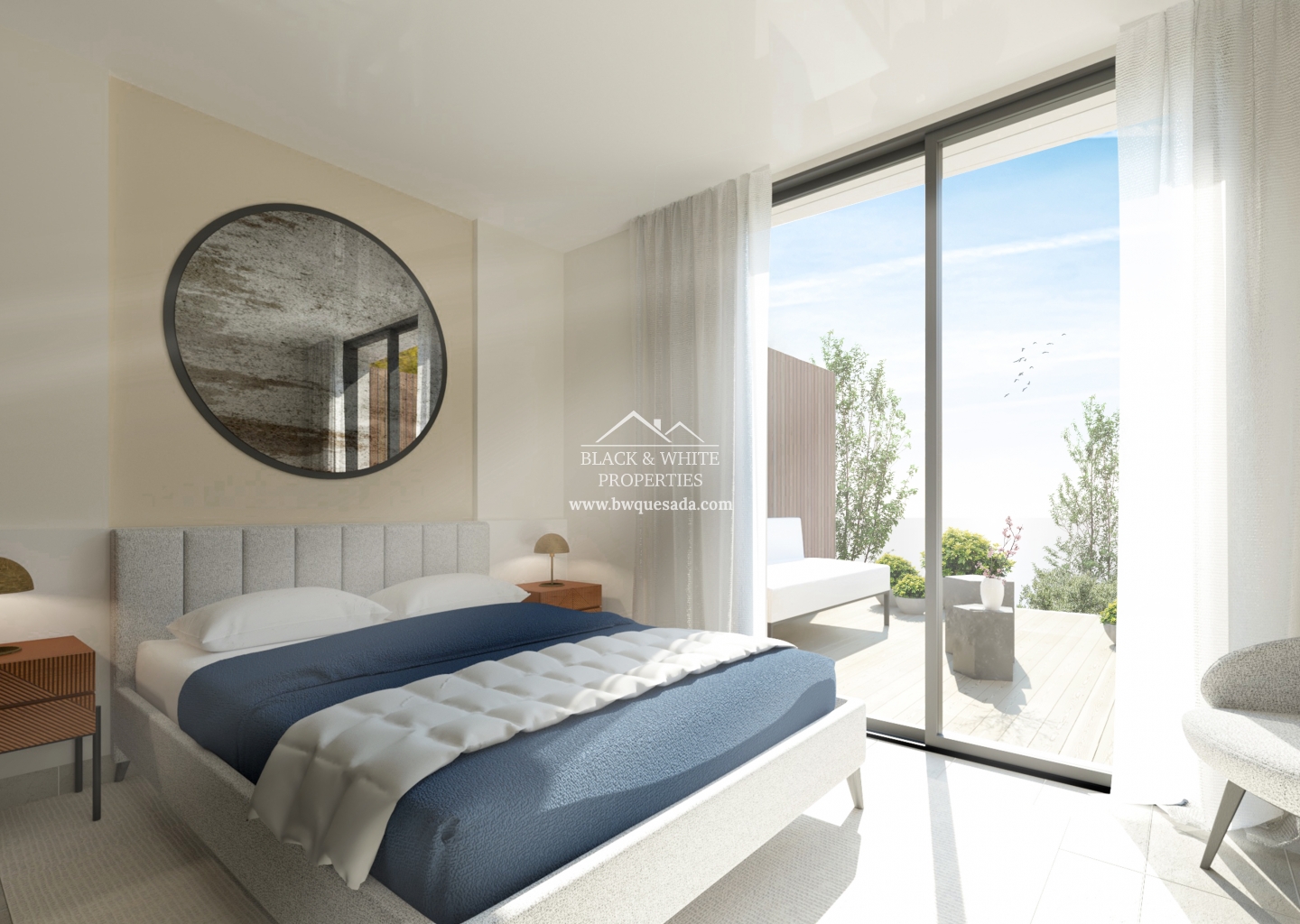 L'étage supérieur accueille deux ou trois grandes chambres, selon la maison de ville choisie, et deux salles de bain. Dans le modèle à deux chambres, la chambre principale dispose d'un dressing et d'un accès à une terrasse ensoleillée, tandis que dans le modèle à trois chambres, toutes les chambres ont des armoires encastrées.