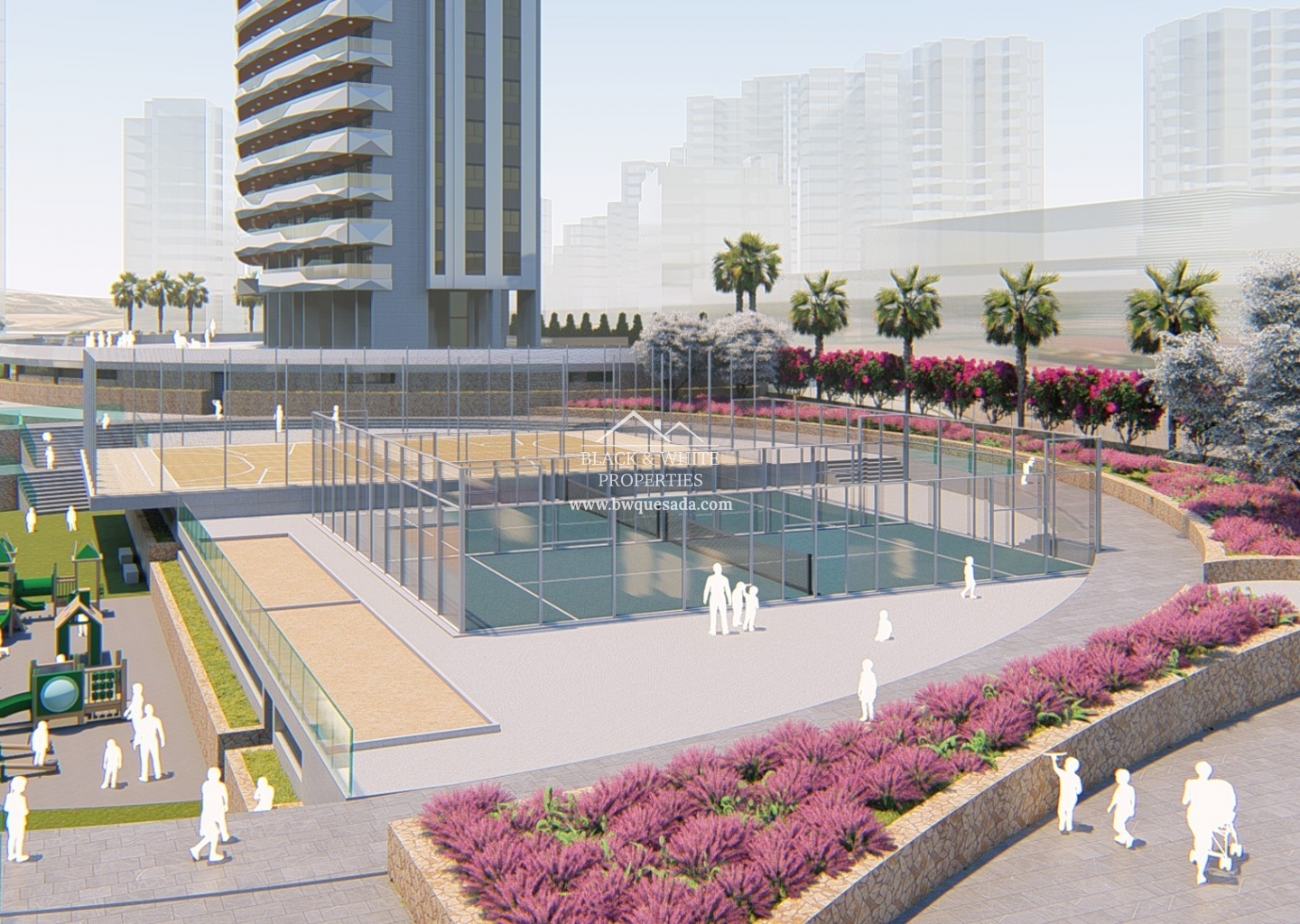 Il dispose de 196 logements de 2, 3 et 4 chambres dans une tour de verre avec de spacieuses terrasses avec vue, idéales pour profiter de l'air frais et du climat fantastique de la côte de Benidorm. C'est une résidence idéale pour tout type de public. Non seulement en raison des nombreux avantages de santé, de bien-être et de divertissement offerts par ses installations. Mais aussi en raison de sa situation à Benidorm, la ville qui ne dort jamais. L'urbanisation dispose d'une piscine pour adultes, d'une piscine pour les plus petits, d'un spa, de jacuzzis, d'un chillout, d'une aire de jeux pour enfants, de deux courts de paddle-tennis, etc.