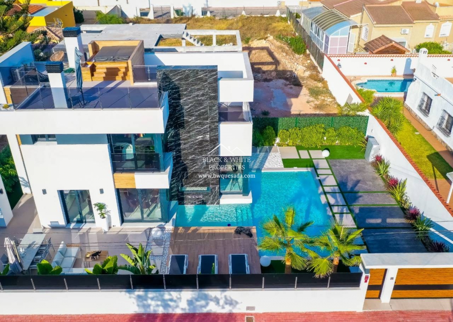Budowa 4 niezależnych willi o jakości projektowej i wykończeniowej dopracowanej w najmniejszym szczególe. Możesz wybierać między 2 różnymi modelami, w których dom jest taki sam, ale istnieje model z większą działką i basenem. Willa składa się z parteru z bardzo przestronnym i otwartym salonem z dużą ilością światła, designerskiej kuchni z wyspą, dwuosobowej sypialni i kompletnej łazienki. Jest też miejsce na „magazynę”, w której znajduje się centrala automatyki domowej. Na pierwszym piętrze znajduje się główna sypialnia z własną łazienką i druga sypialnia z własną łazienką. Istnieje również duży taras, z którego można dostać się do prywatnego solarium zewnętrznymi schodami, gdzie znajduje się preinstalacja dla jacuzzi ze wspaniałym widokiem na lagunę i całą Torrevieja. Dom to inteligentny dom, który dzięki różnym zastosowaniom steruje prawie całym domem od rolet po nawiew i oświetlenie. Jego strategiczne położenie w pobliżu centrum Torrevieja, centrów handlowych i plaży sprawia, że jest to idealne miejsce na wakacje lub na stałe miejsce zamieszkania.