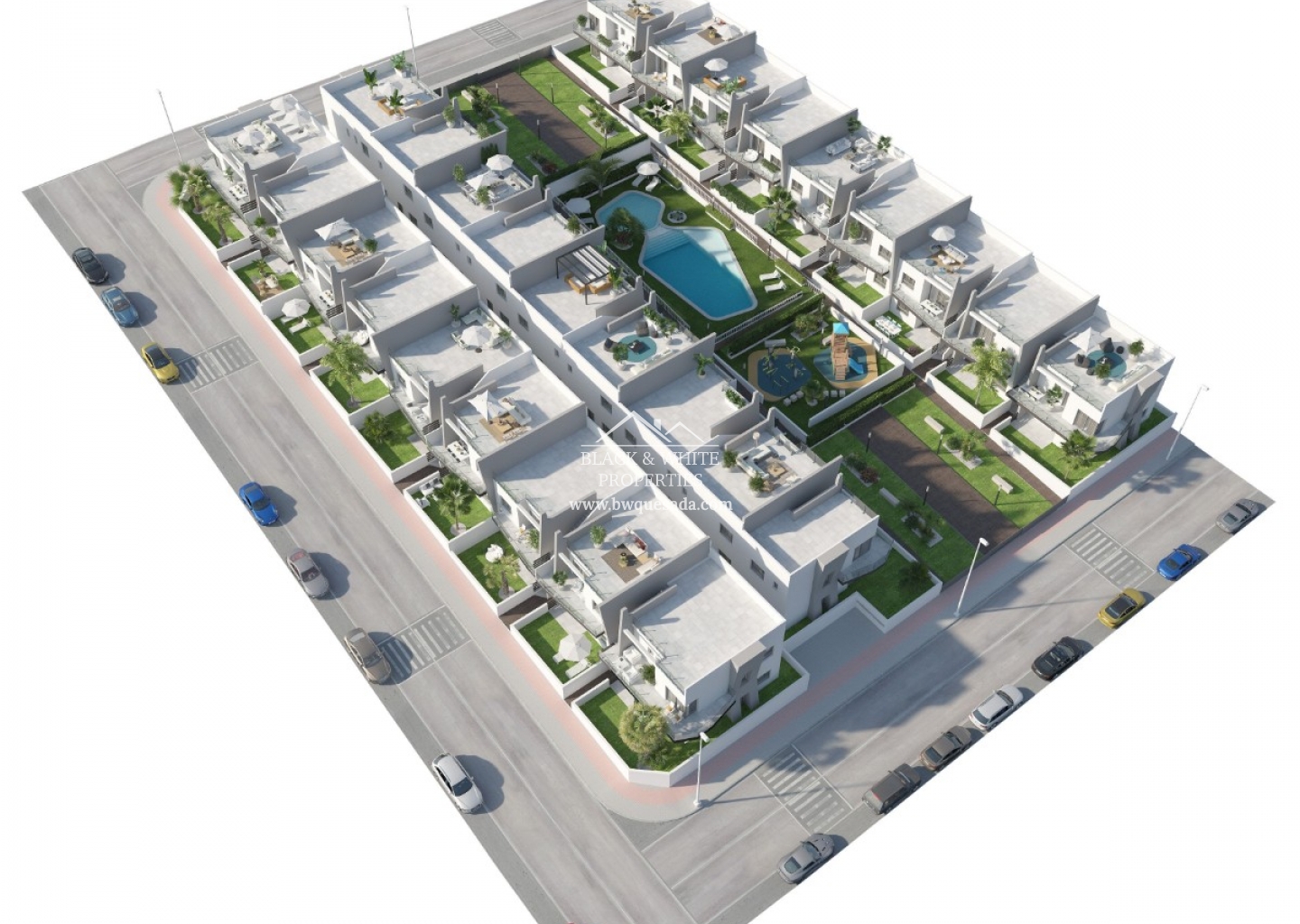 Zabudowa mieszkaniowa składająca się ze 108 domów w zabudowie bliźniaczej typu bungalow z 1, 2 i 3 sypialniami, rozmieszczonych na parterze z ogrodem lub na wyższych piętrach z prywatnym solarium. Osiedle całkowicie zamknięte z osiedlowymi basenami dla dorosłych i dzieci, terenami zielonymi, placem zabaw dla dzieci. Znajduje się w San Miguel de Salinas w pobliżu pól golfowych, centrów handlowych.