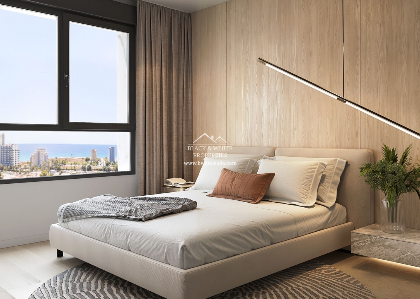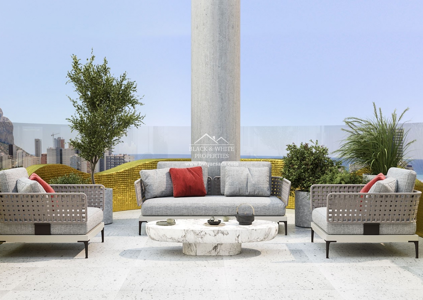 Ta wspaniała nowa inwestycja budowlana znajduje się w Calpe na północnym wybrzeżu Costa Blanca. Każdy apartament posiada 3 sypialnie i duży taras z widokiem na morze, lagunę i słynną skałę Calpe, Peñón de Ifach. Części wspólne obejmują basen, kort do padla, siłownię, plac zabaw dla dzieci i piękny śródziemnomorski ogród. Budynek inspirowany jest drzewem z powłoką ceramiczną i złotymi liśćmi w formie tarasów. Wyposażony w luksusowe walory, ciepłą i zimną klimatyzację, designerską kuchnię ze wszystkimi urządzeniami oraz garaż i komórkę lokatorską w cenie.