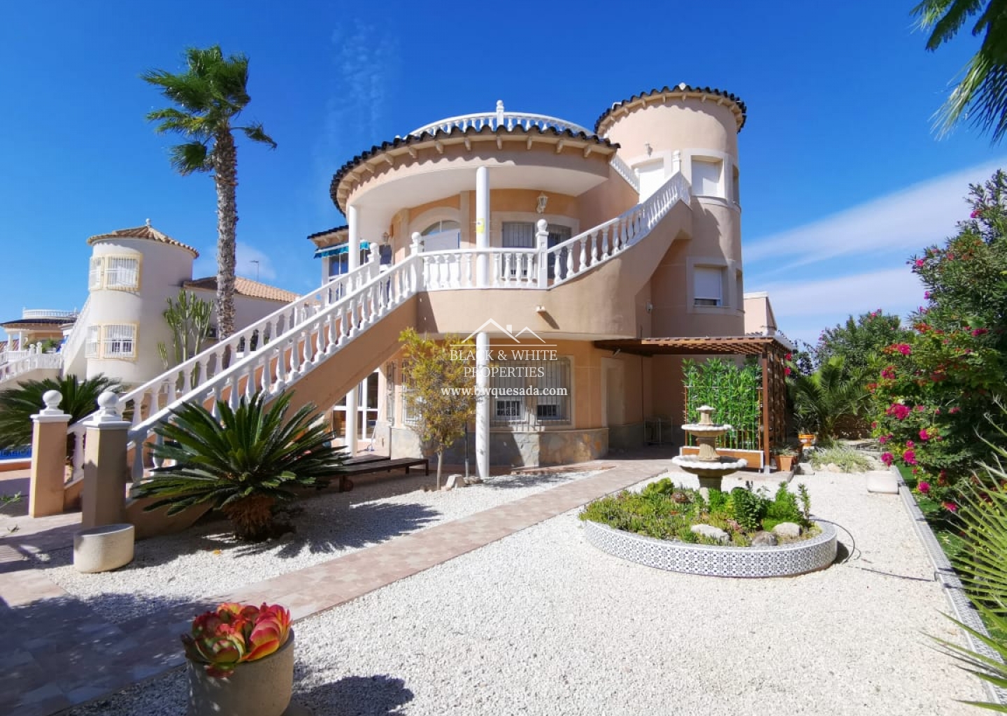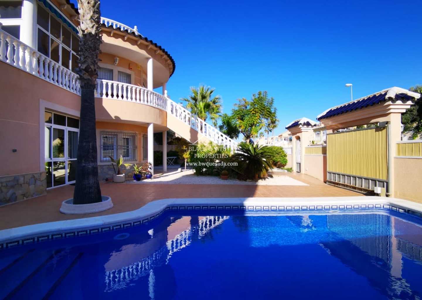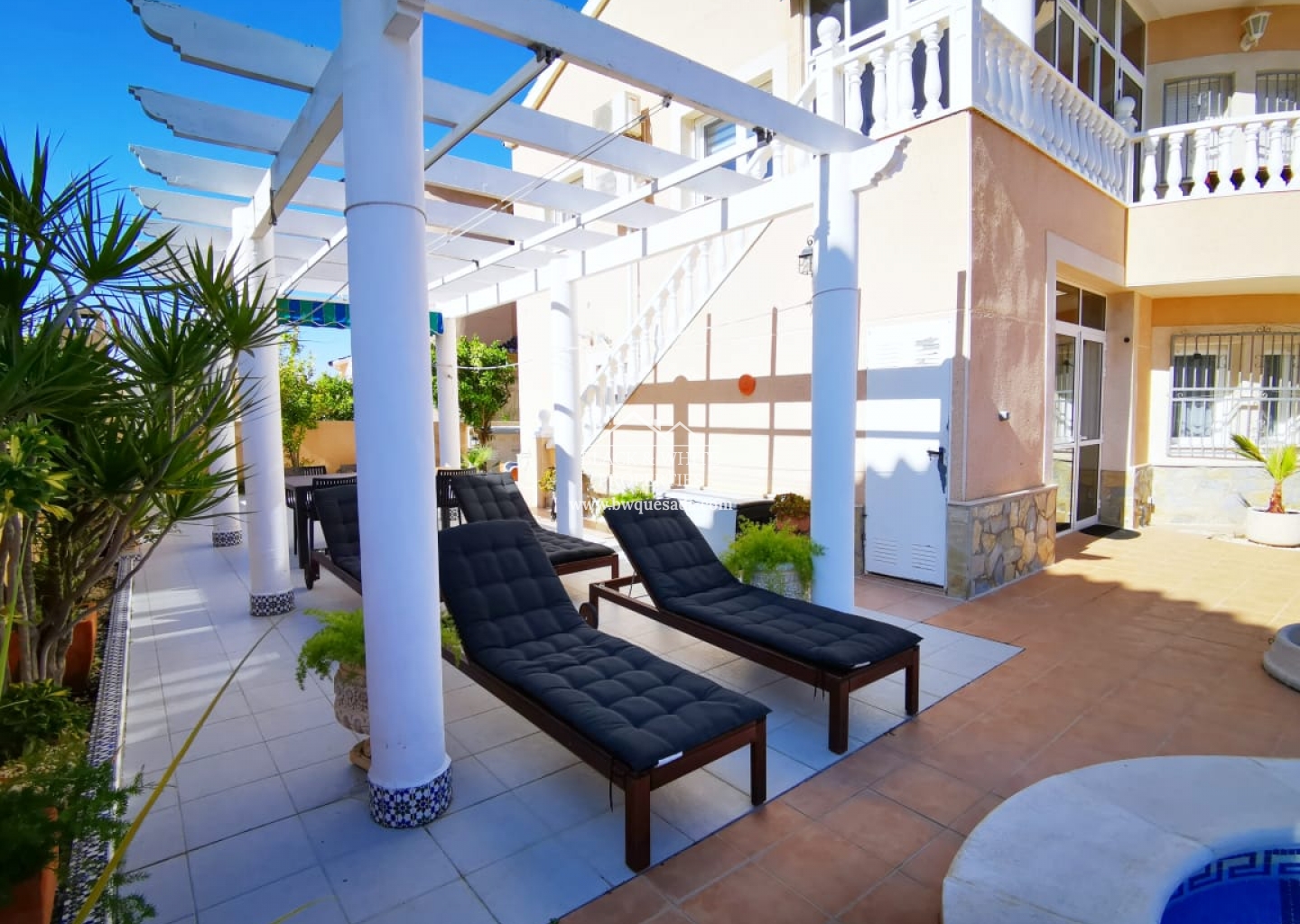 Willa znajduje się w jednej z najbardziej ekskluzywnych części Orihuela Costa, w Los Altos, obszarze otoczonym domkami, aby cieszyć się słońcem przez 365 dni i cieszyć się basenem przez cały rok, ponieważ jest ogrzewany do użytku zarówno latem, jak i latem. zima. Jego duża działka jest w pełni wyposażona we wszystko, czego potrzebujesz, aby być z rodziną i przyjaciółmi, jest grill i piec opalany drewnem, strefa relaksu, mata dla najmłodszych, leżaki i duży stół, przy którym można zjeść . Dom jest rozmieszczony na 3 piętrach: Na parterze znajduje się salon, niezależna kuchnia, łazienka i dwie sypialnie. Na piętrze salon z kuchnią, łazienka, przeszklony taras, dwie sypialnie oraz duży taras widokowy. Na drugim piętrze oddzielna sypialnia z łazienką. Domek jest bardzo dobrze wyposażony, ze wszystkimi wygodami i klimatyzacją w głównych pokojach.