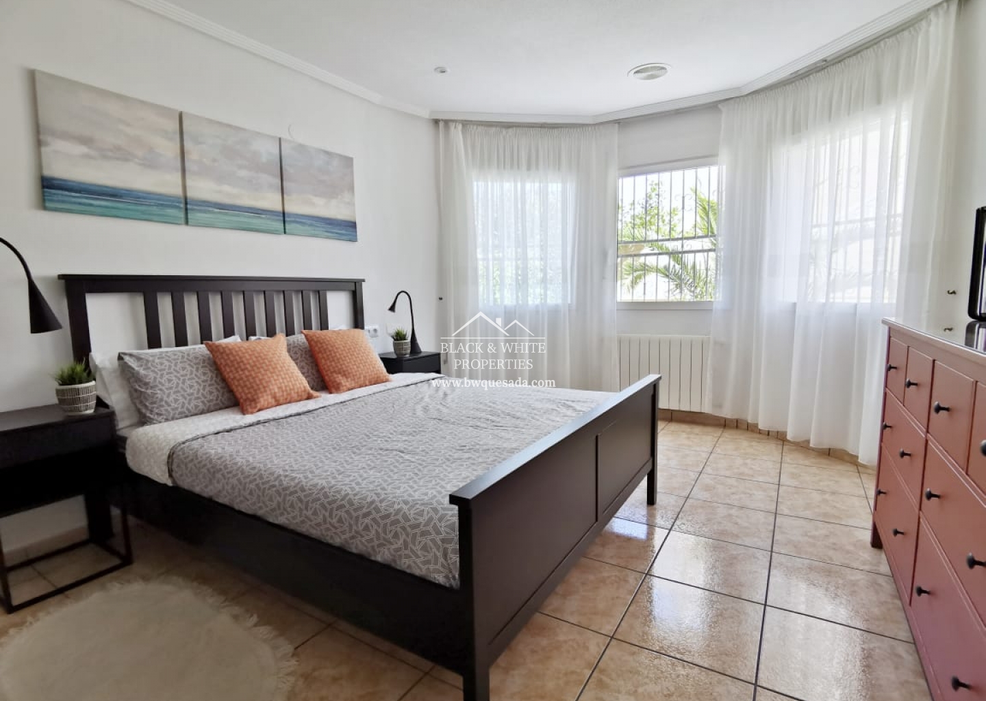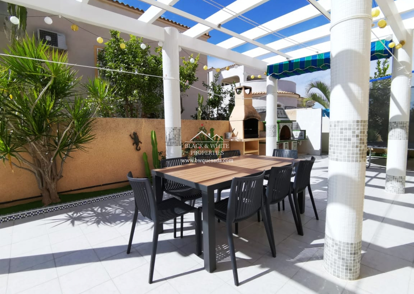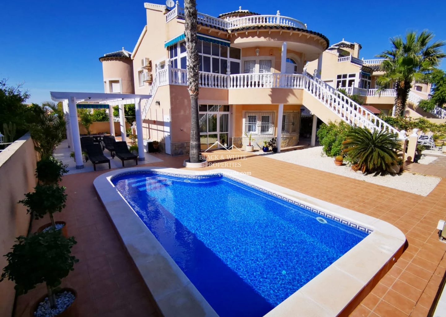 Willa znajduje się w jednej z najbardziej ekskluzywnych części Orihuela Costa, w Los Altos, obszarze otoczonym domkami, aby cieszyć się słońcem przez 365 dni i cieszyć się basenem przez cały rok, ponieważ jest ogrzewany do użytku zarówno latem, jak i latem. zima. Jego duża działka jest w pełni wyposażona we wszystko, czego potrzebujesz, aby być z rodziną i przyjaciółmi, jest grill i piec opalany drewnem, strefa relaksu, mata dla najmłodszych, leżaki i duży stół, przy którym można zjeść . Dom jest rozmieszczony na 3 piętrach: Na parterze znajduje się salon, niezależna kuchnia, łazienka i dwie sypialnie. Na piętrze salon z kuchnią, łazienka, przeszklony taras, dwie sypialnie oraz duży taras widokowy. Na drugim piętrze oddzielna sypialnia z łazienką. Domek jest bardzo dobrze wyposażony, ze wszystkimi wygodami i klimatyzacją w głównych pokojach.