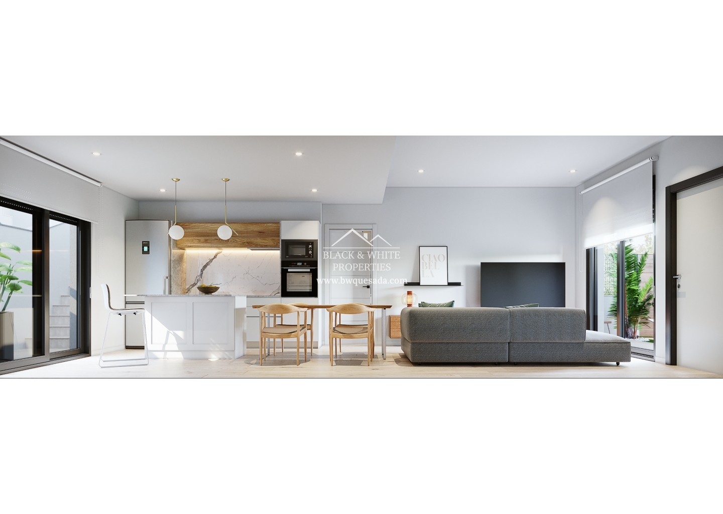 Każda nieruchomość posiada 2 lub 3 sypialnie i 2 wyposażone łazienki. Zaprojektowany w nowoczesnym stylu i otwartej koncepcji, obejmujący wyposażoną kuchnię i salon-jadalnię.