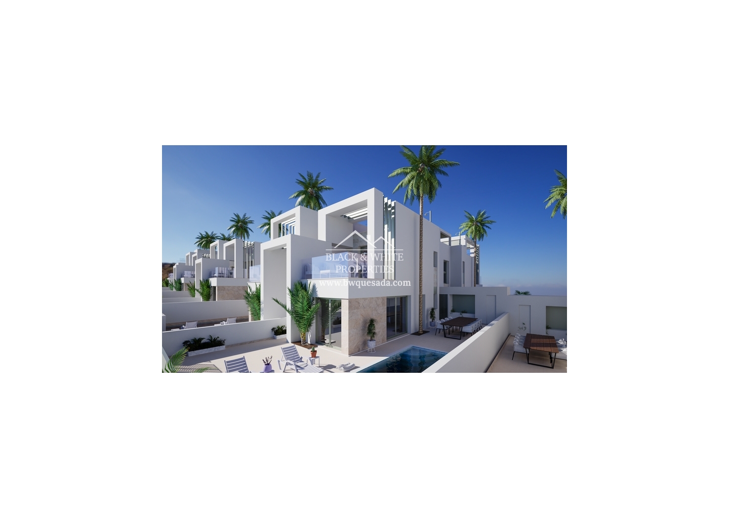 Przedstawiamy tę nową inwestycję zlokalizowaną w Ciudad Quesada, która oferuje 30 ekskluzywnych nowoczesnych willi położonych kilka minut spacerem od wszystkich obiektów rekreacyjnych. Te imponujące wille są rozmieszczone na dwóch piętrach z prywatnym tarasem i solarium. Parter obejmuje jasny salon na otwartym planie z nowoczesną kuchnią i jadalnią, a także dużą sypialnię z wbudowanymi szafami i łazienką. Na piętrze znajdują się dwie sypialnie z wbudowanymi szafami i łazienkami. Główna sypialnia posiada prywatny balkon. Zbudowane na działkach o powierzchni od 167 do 183 m2, wille te są wyposażone w najnowocześniejsze udogodnienia, w tym elektryczne rolety, aerotermalny system ciepłej wody, kompletny pakiet urządzeń, wstępnie zainstalowaną strefę jacuzzi, taras, klimatyzację kanałową z opcją dodać system Airzone, pakiet oświetlenia i prywatny basen.